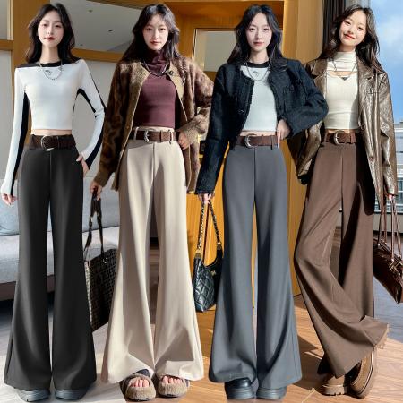 FA43709# 秋冬新款羊毛西装喇叭裤高腰微喇直筒保暖阔腿拖地裤女 服裝批發女裝批發服飾貨源