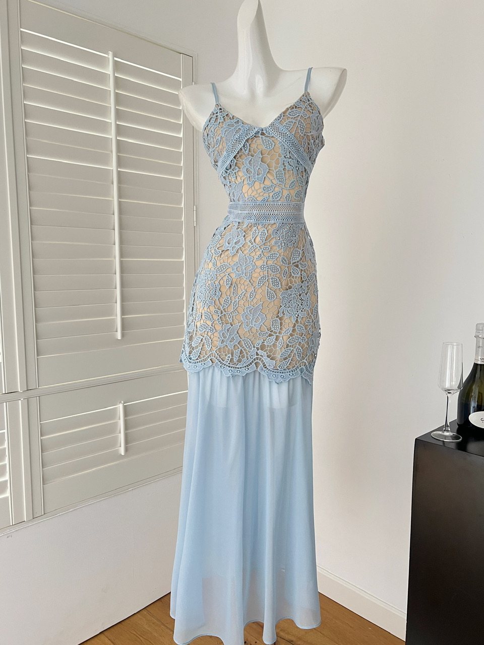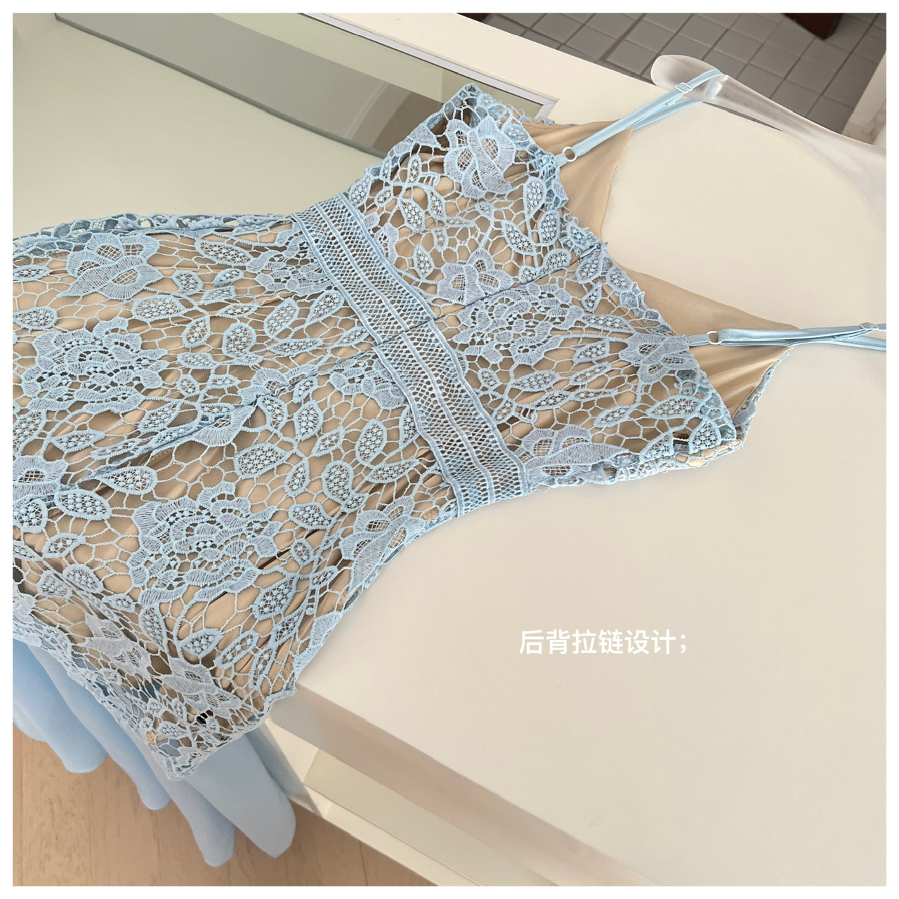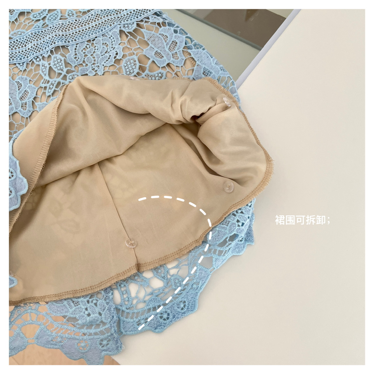 FA15762# 花漾蕾丝花边蕾丝拼接连衣裙网纱下摆长裙 服裝批發女裝批發服飾貨源
