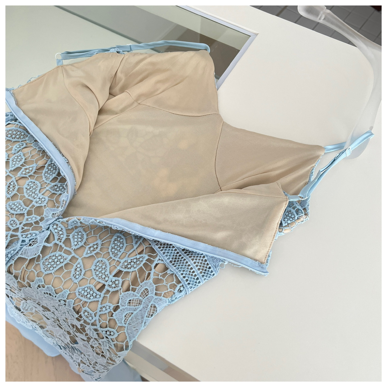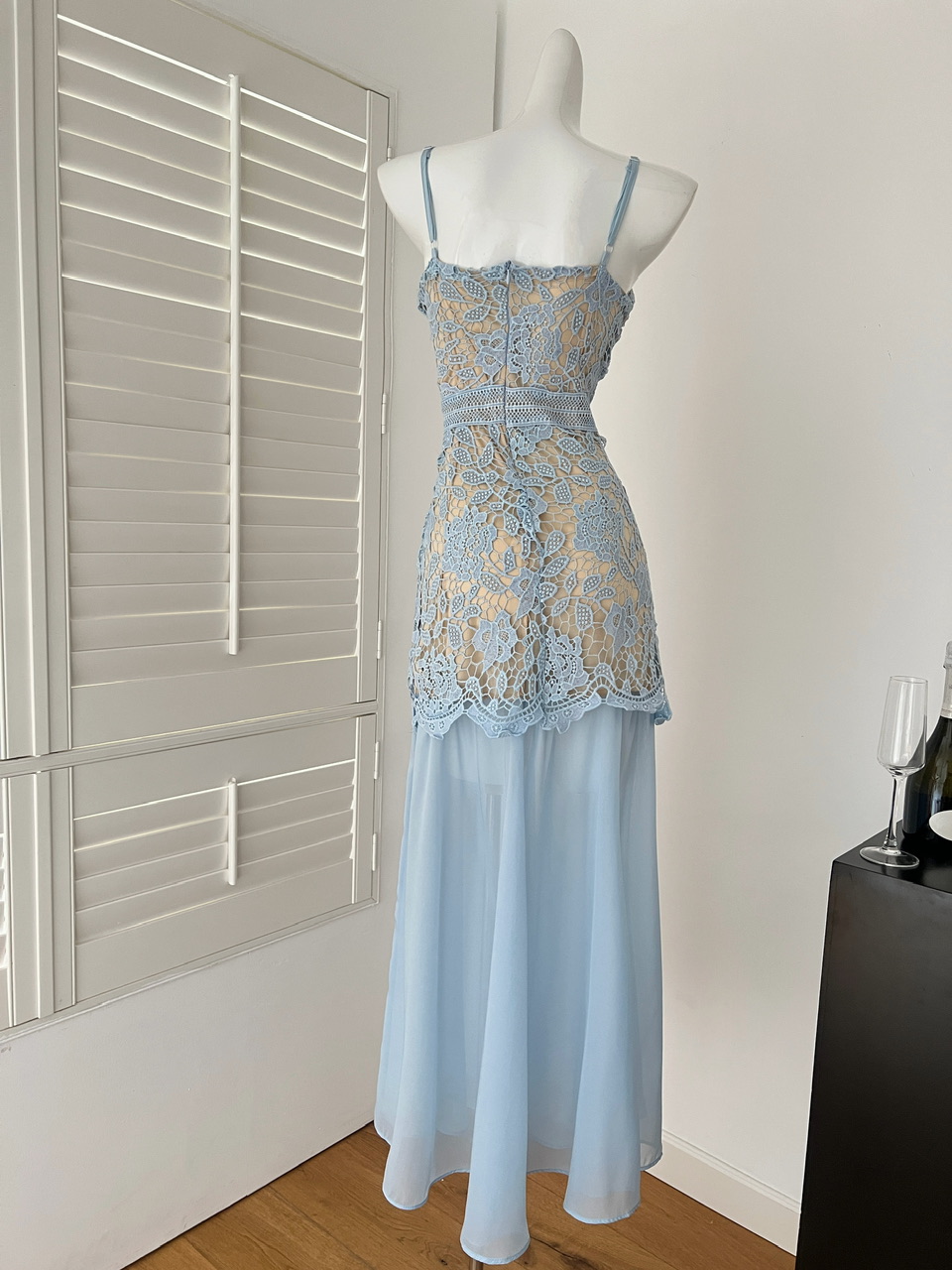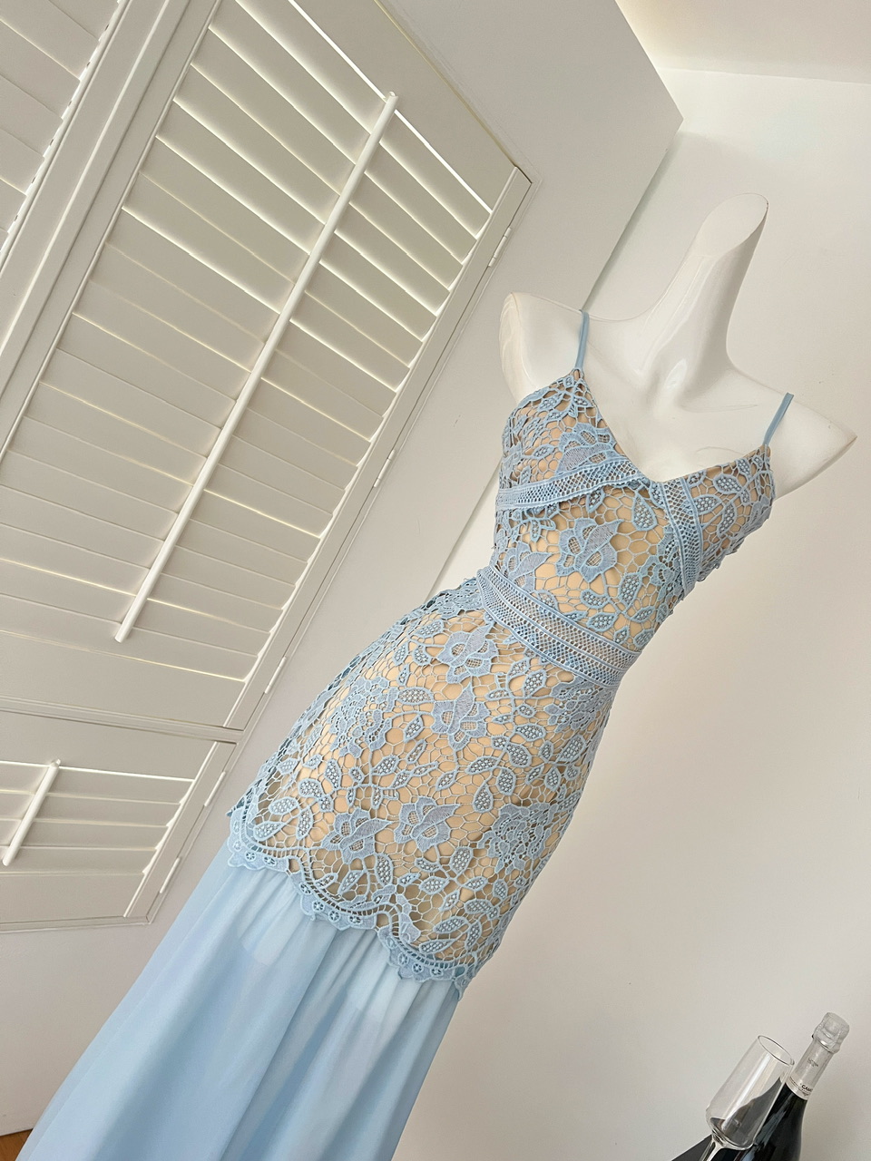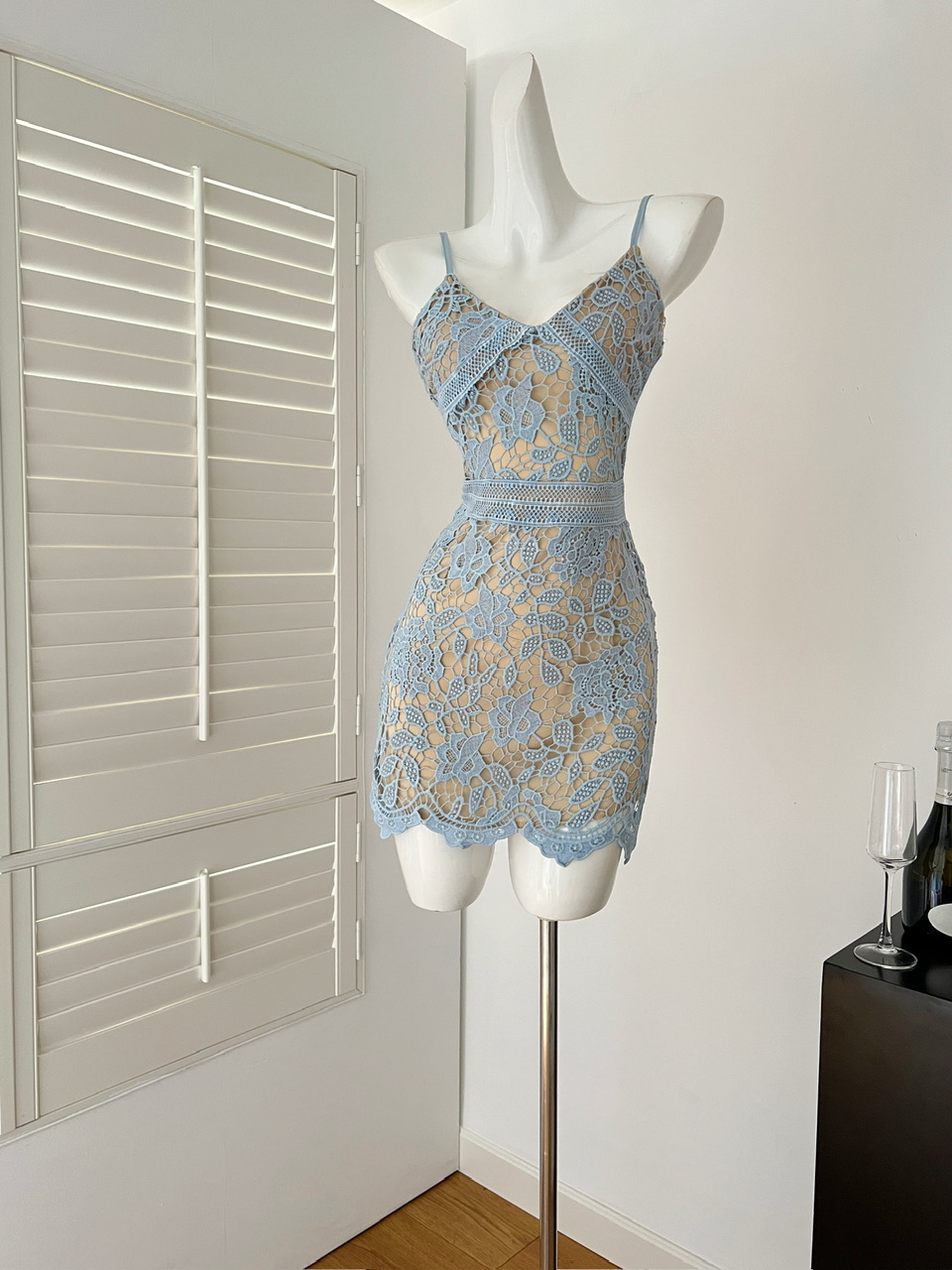 FA15762# 花漾蕾丝花边蕾丝拼接连衣裙网纱下摆长裙 服裝批發女裝批發服飾貨源