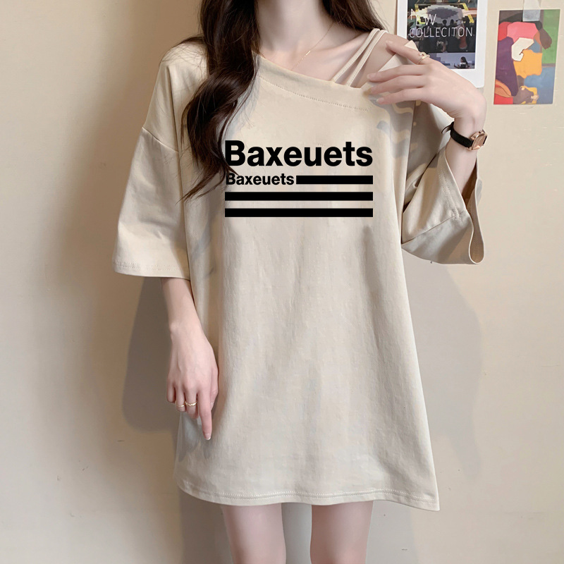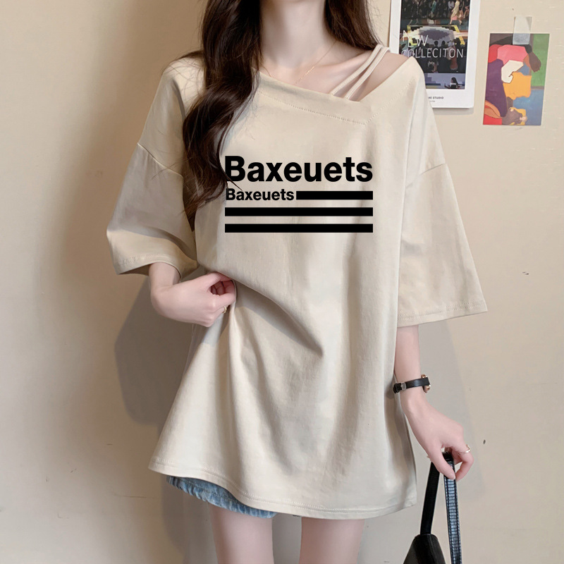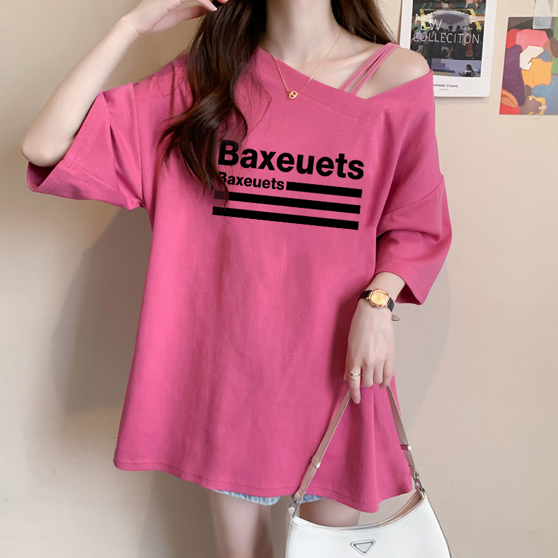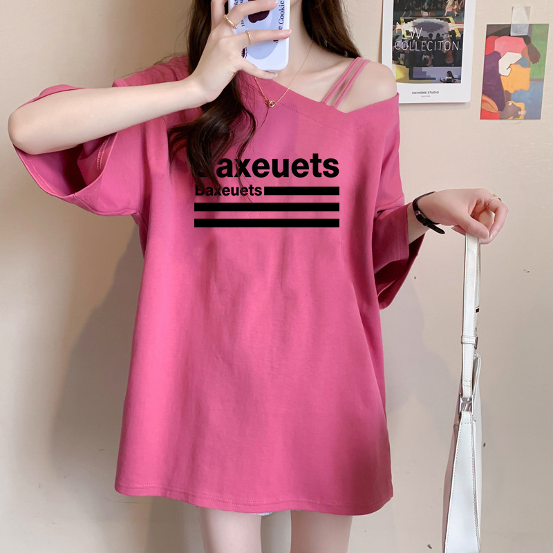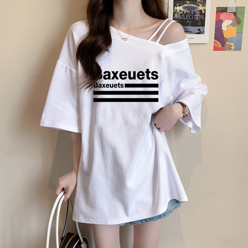 Home > 短袖T恤 > FA36996# 纯棉斜肩短袖T恤女夏季韩版宽松显瘦百搭时尚大码洋气半袖上衣ins 服裝批發女裝批發服飾貨源