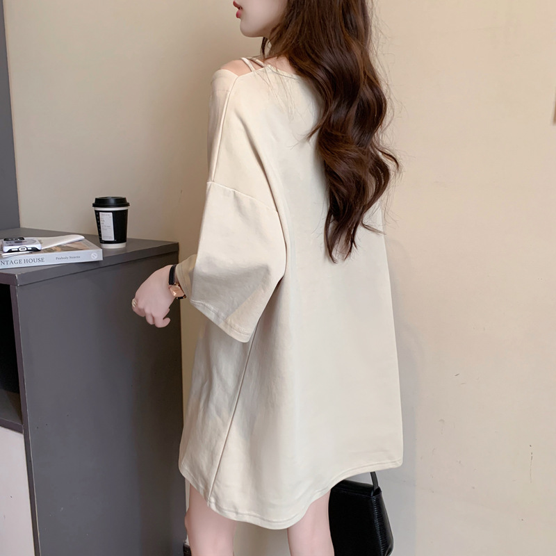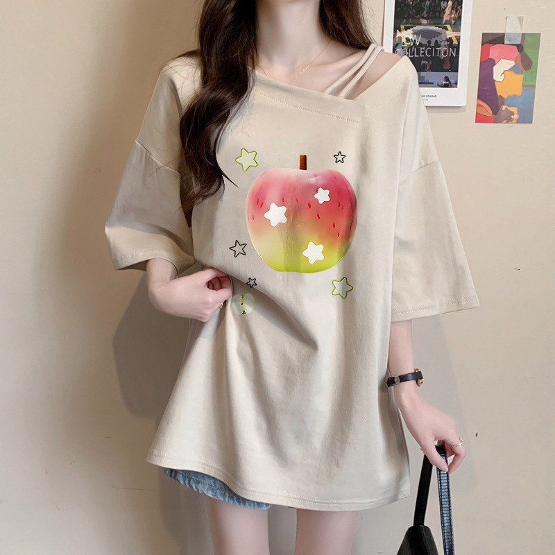Home > 短袖T恤 > FA37018# 设计感显瘦斜领短袖T恤女纯棉夏季韩版宽松卡通趣味印花大码上衣 服裝批發女裝批發服飾貨源