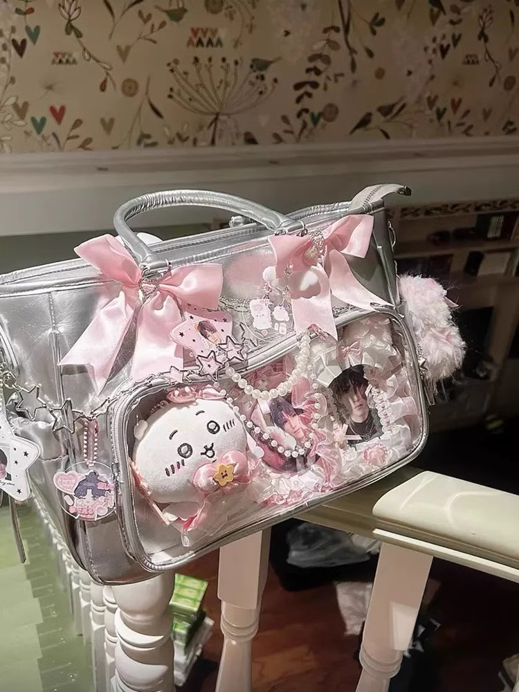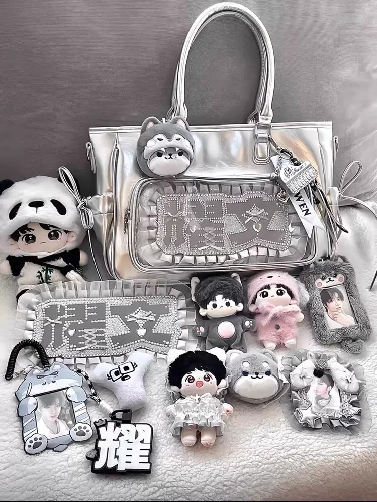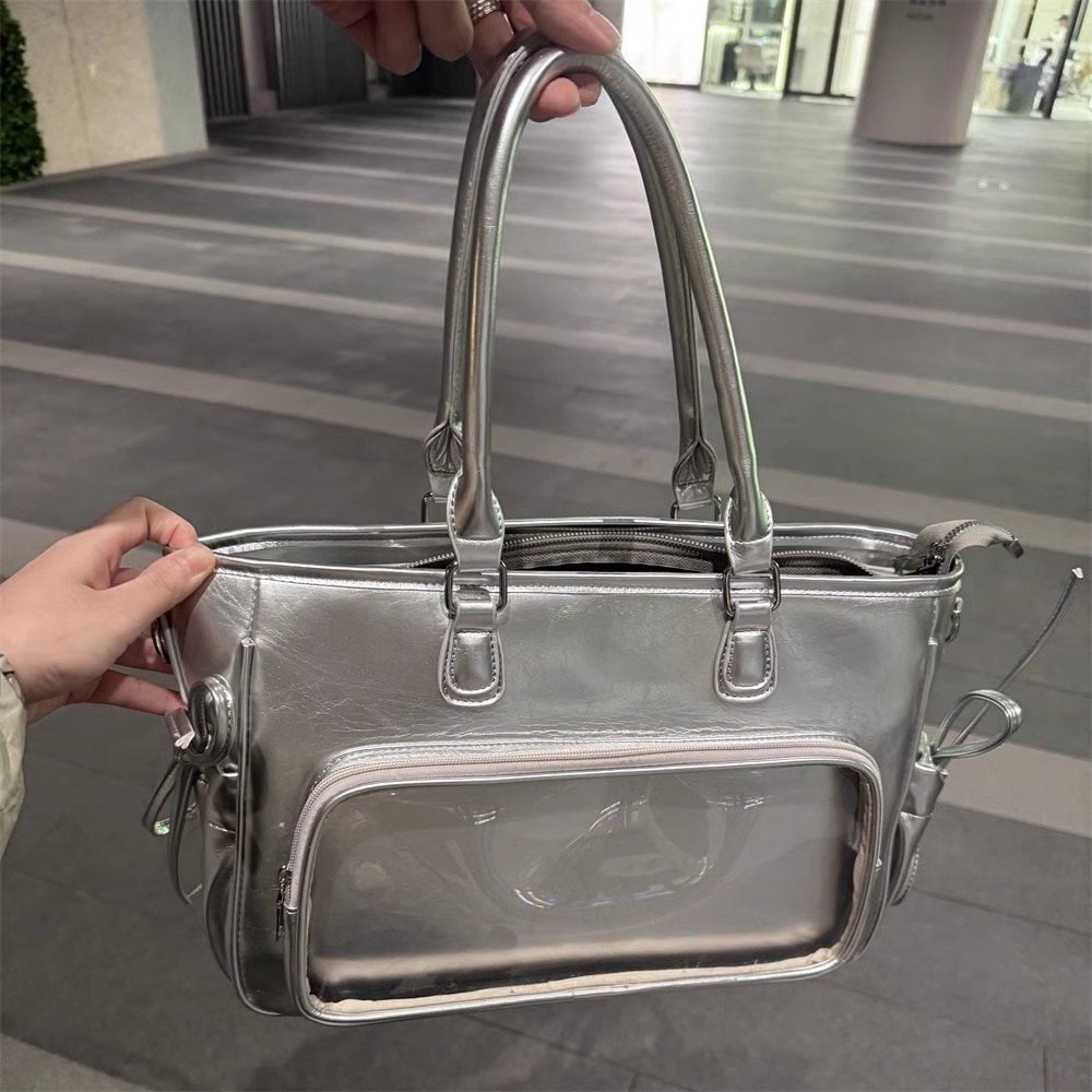 FA41459# 时尚新款银色痛包托特包大容量透明可diy 女包批发包包批发