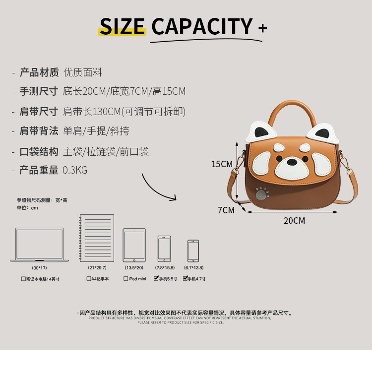 FA41460# 新款可爱PU卡通马鞍包动物斜挎包单肩手提包日常 女包批发包包批发