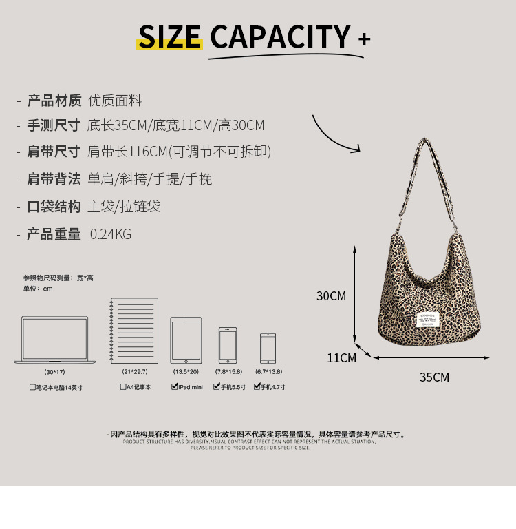 FA41462# 大容量通勤托特包女韩版豹纹帆布包包休闲单肩斜挎包 女包批发包包批发