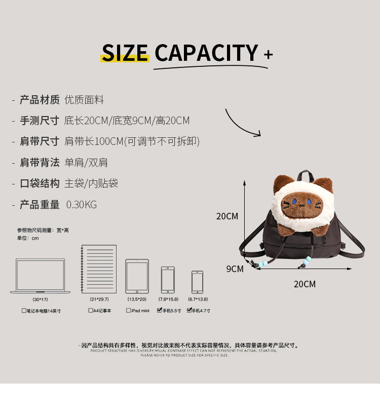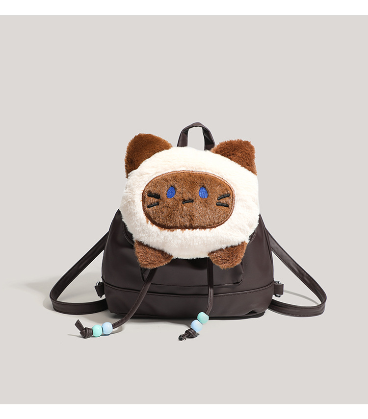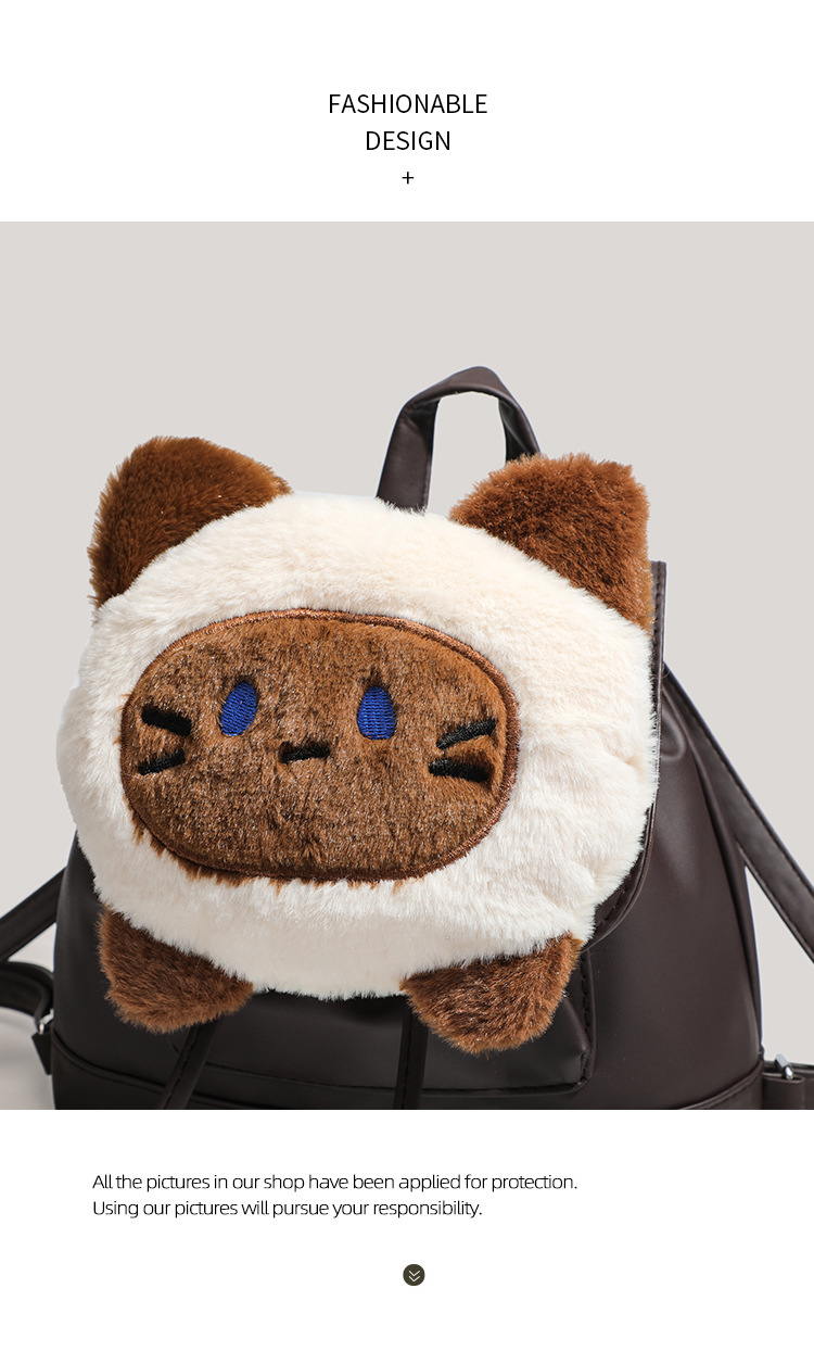 FA41476# 暹罗猫毛绒双肩包秋季新款大容量百搭小背包日韩可爱少女背包 女包批发包包批发