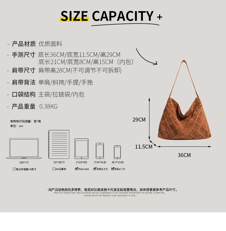 FA41482# 绒面托特百搭新款单肩秋冬大容量通勤复古腋下包 女包批发包包批发