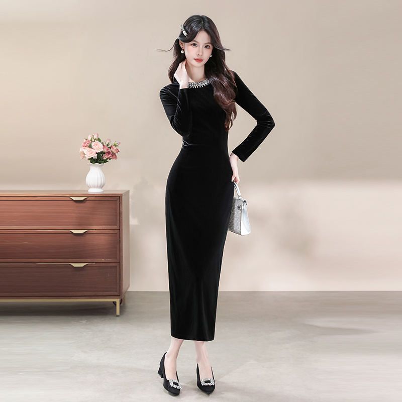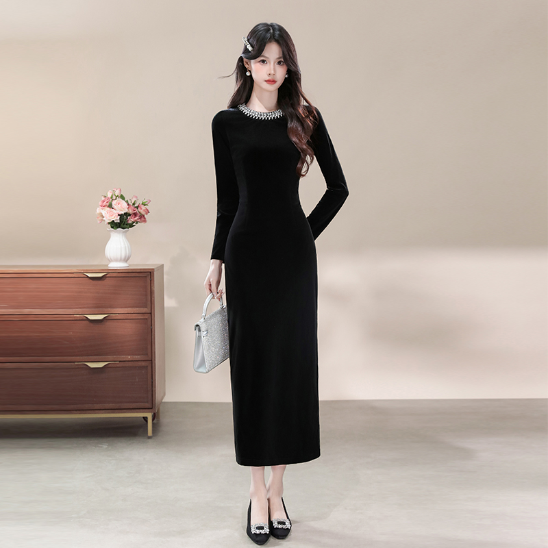 FA43121# 品质晚礼服女轻奢小众高级感年会主持演出丝绒连衣裙 服裝批發女裝批發服飾貨源
