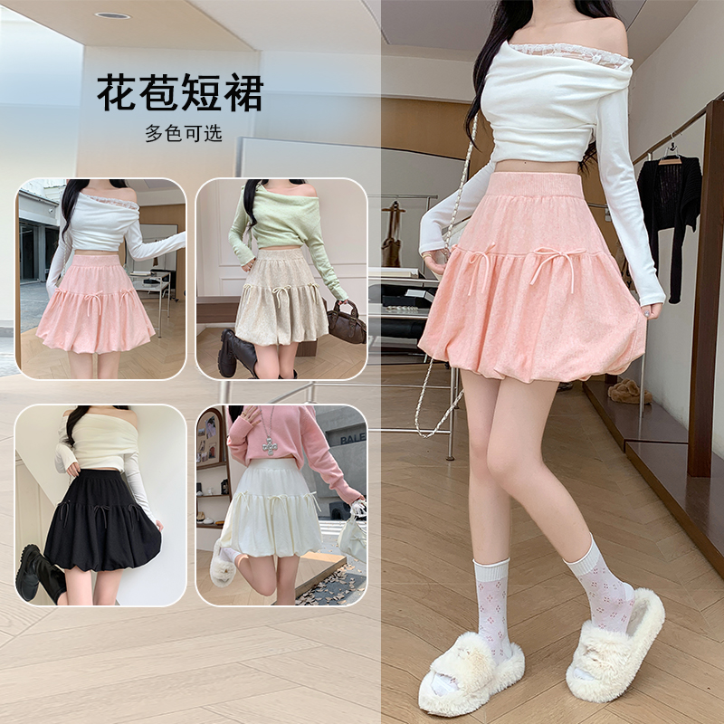 FA43273# ~蝴蝶结褶皱花苞半身裙女秋冬新款时髦A字百搭短裙 服裝批發女裝批發服飾貨源