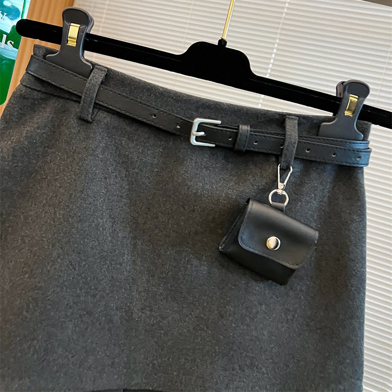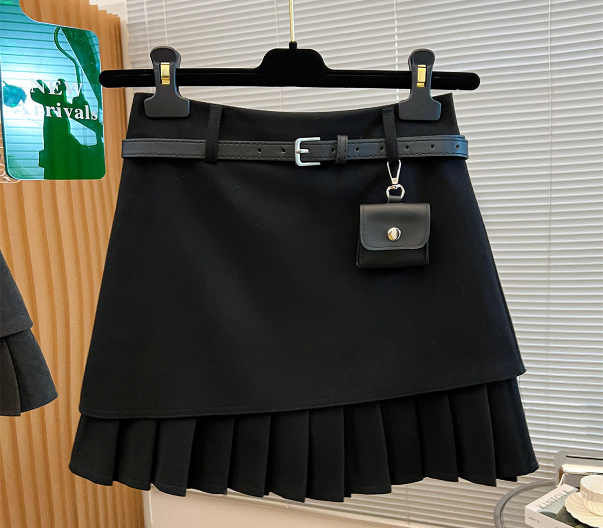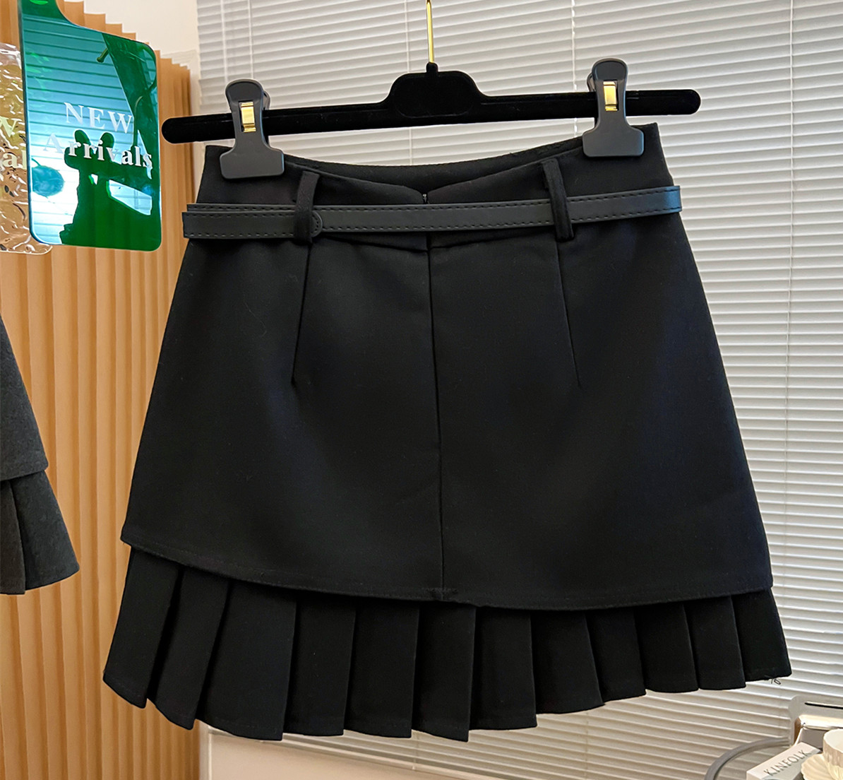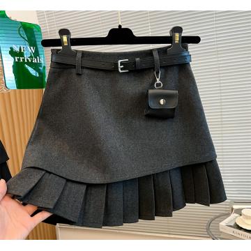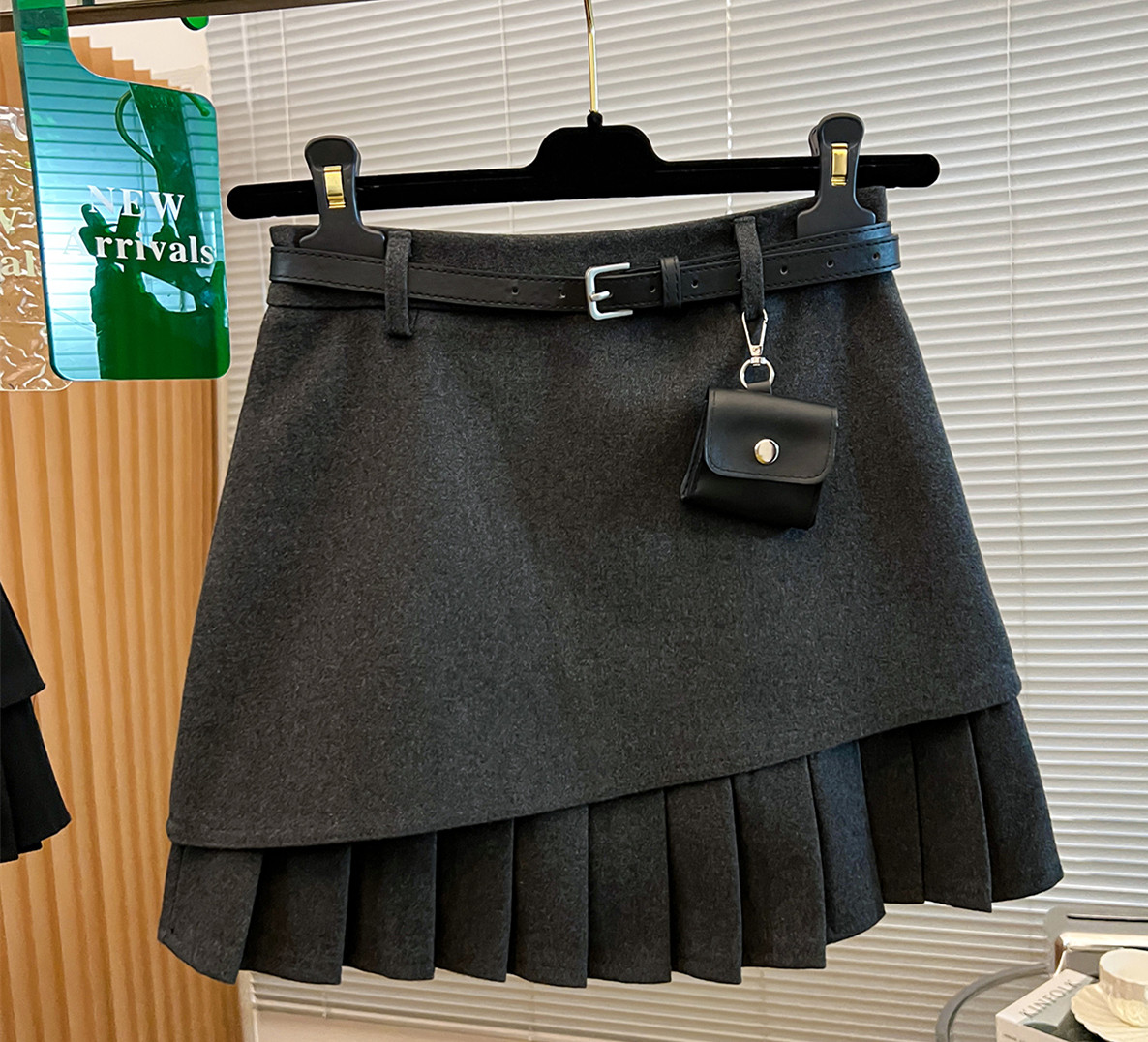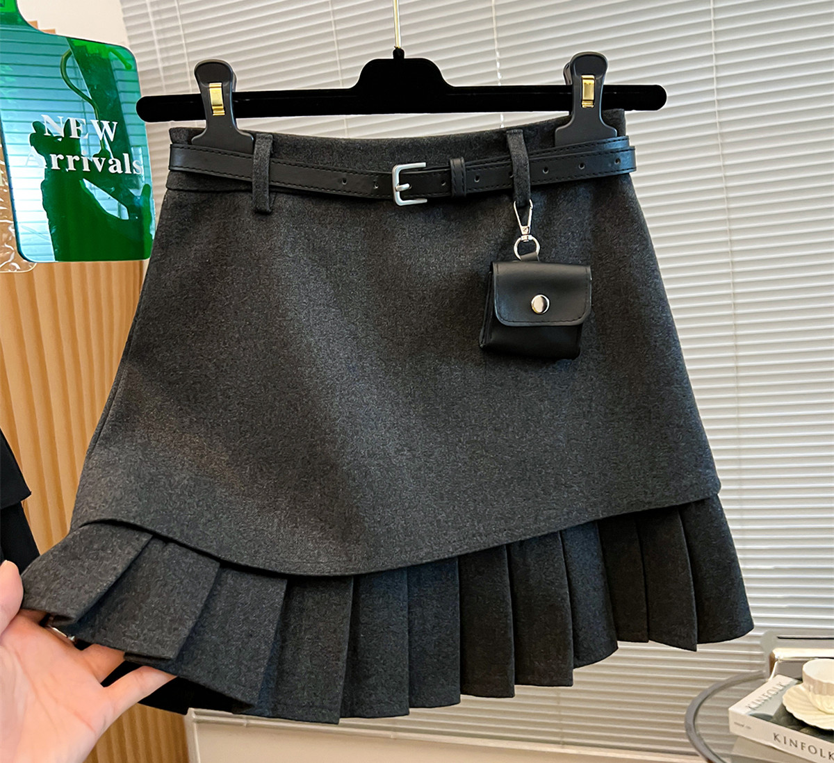 FA43440# 高级灰色设计感包臀显瘦毛呢半身裙女秋冬高腰百褶短裙A字裙 服裝批發女裝批發服飾貨源