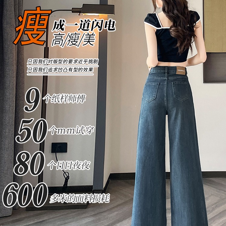 FA43447# 烫钻牛仔裤女高腰宽松显瘦垂感阔腿裤复古时尚百搭拖地长裤 服裝批發女裝批發服飾貨源