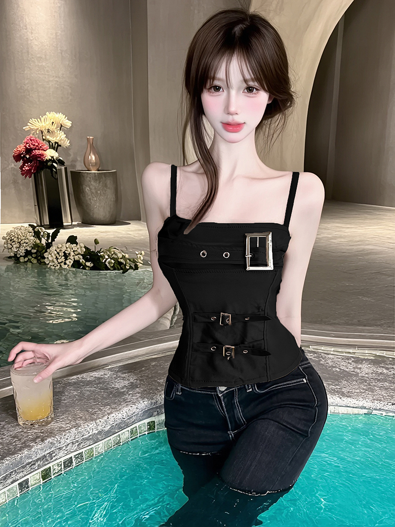 FA43489# 美式辣妹复古时尚设计感吊带背心修身百搭显瘦上衣女 服裝批發女裝批發服飾貨源