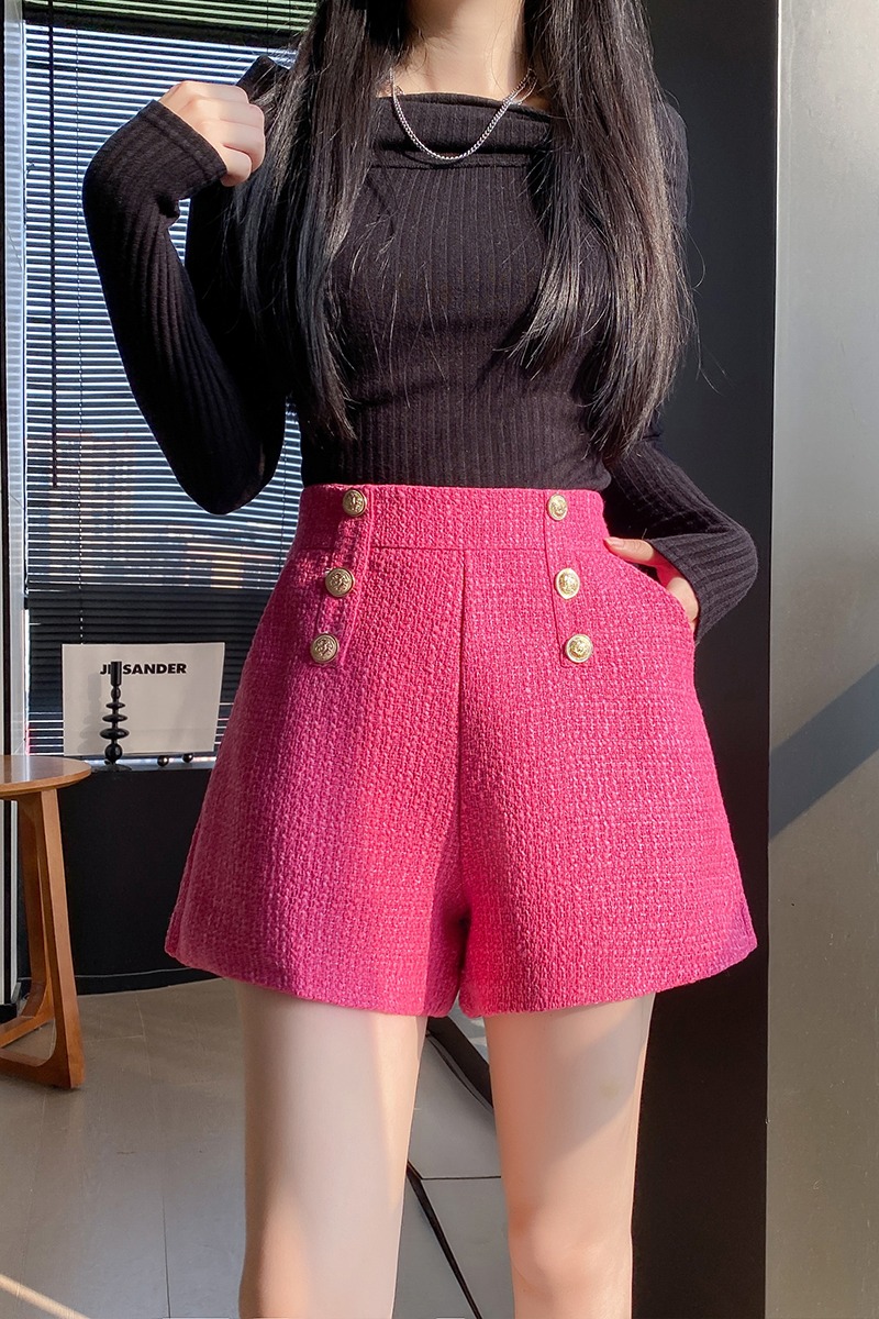 FA43837# 毛呢料a字阔腿裤短裤双排扣宽松显瘦高腰休闲裤外穿打底裤子 服裝批發女裝批發服飾貨源