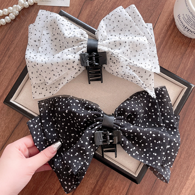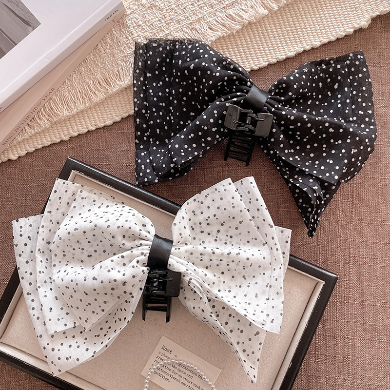 CX13547# 最便宜饰品批发 法式复古波点大蝴蝶结抓夹头花半扎发抓后脑勺马尾鲨鱼夹发夹头饰