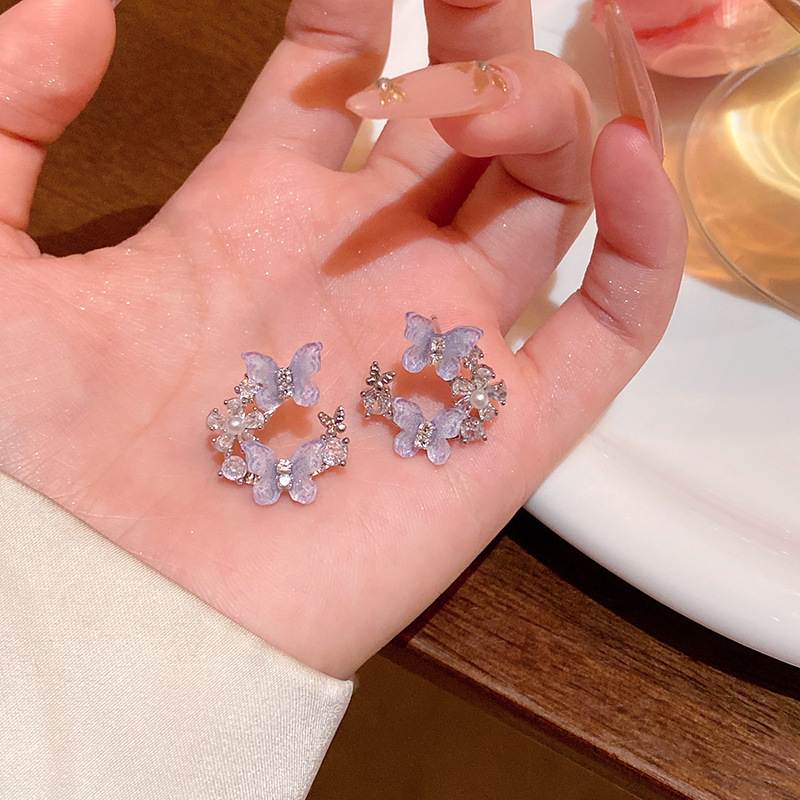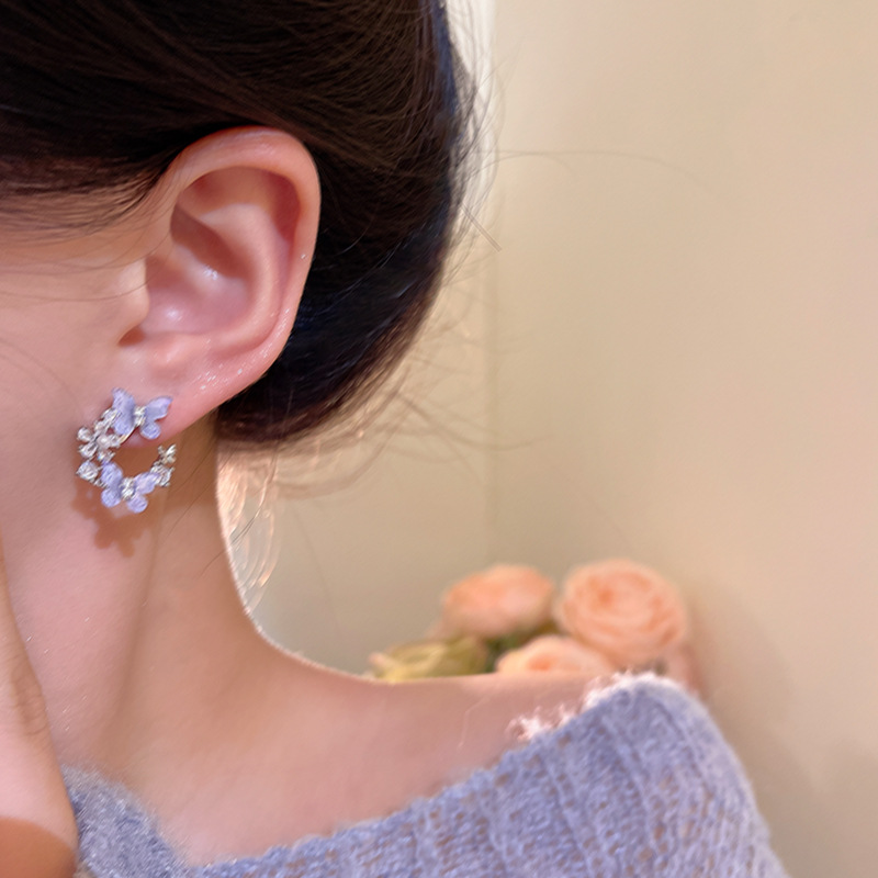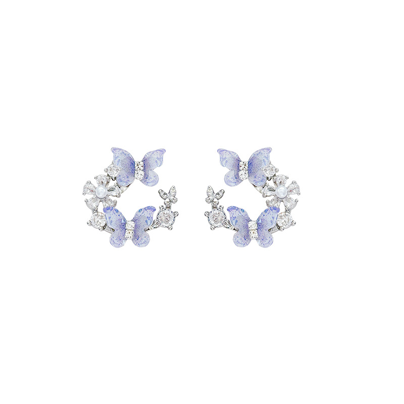 CX13569# 最便宜饰品批发 春夏爆款森系超仙气质蓝色蝴蝶耳环女时尚高级感微镶锆石耳钉耳饰
