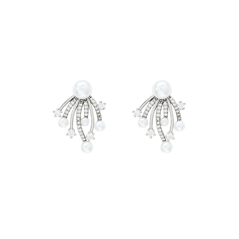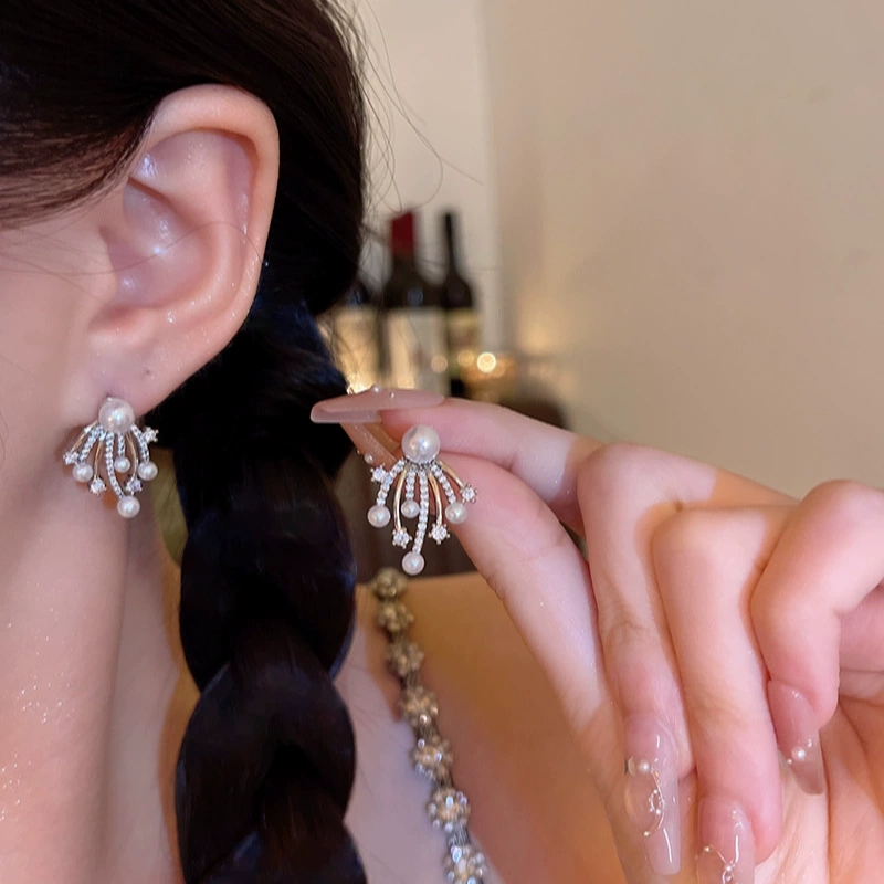 CX13570# 最便宜饰品批发 轻奢小众高级感珍珠烟花耳环女精致微镶锆石耳钉网红耳饰品
