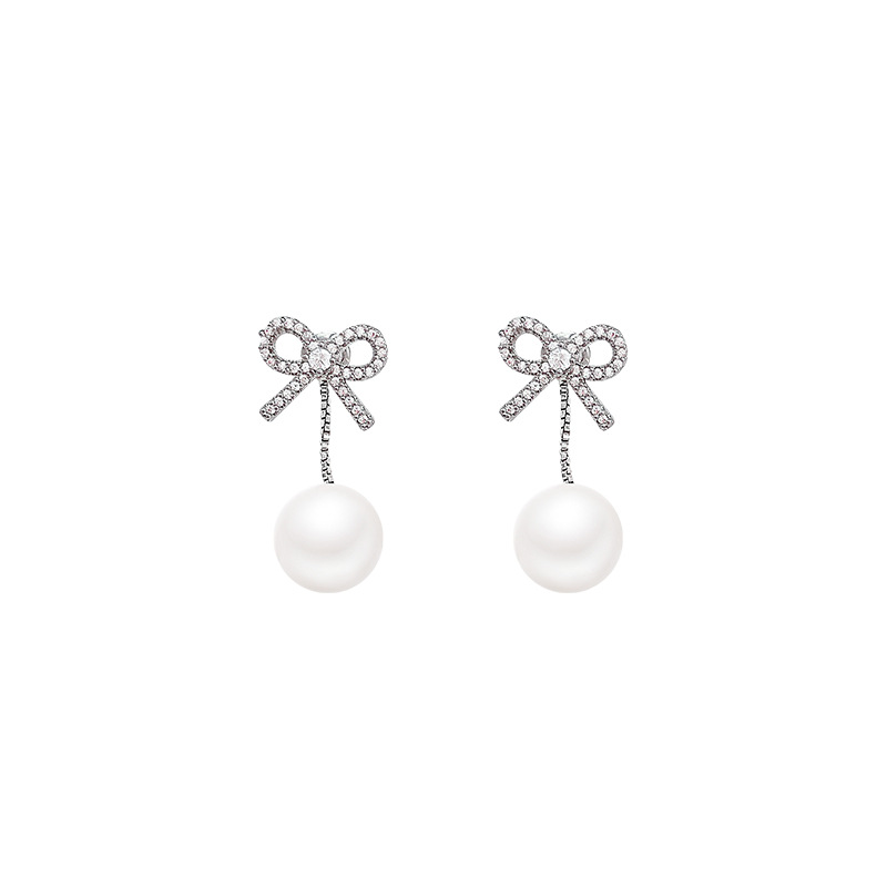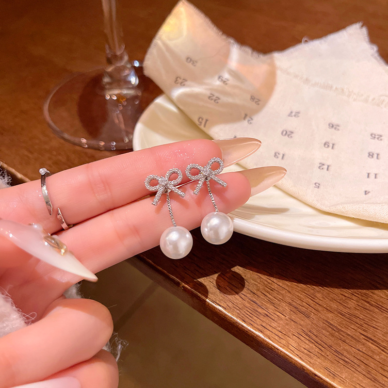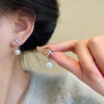 CX13571# 最便宜饰品批发 韩系爆款甜美后挂式蝴蝶结耳钉女长款流苏百搭气质珍珠耳环耳饰品