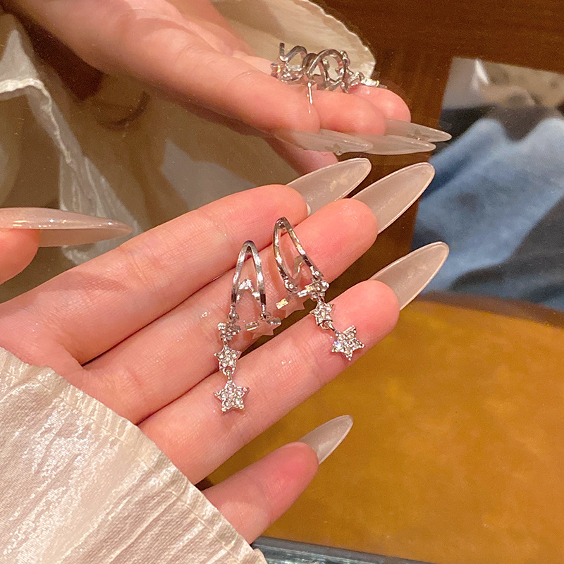 CX13574# 最便宜饰品批发 甜美辣妹风长款流苏星星耳环女轻奢小众时尚百搭气质耳钉网红耳饰