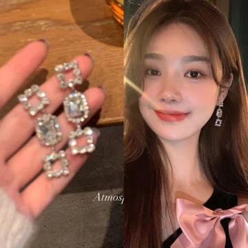 CX13577# 最便宜饰品批发 韩系爆款超闪水钻几何形耳环女轻奢小众高级感耳钉网红耳饰品批发