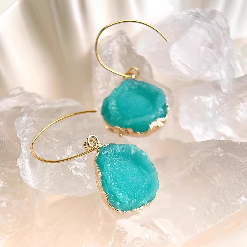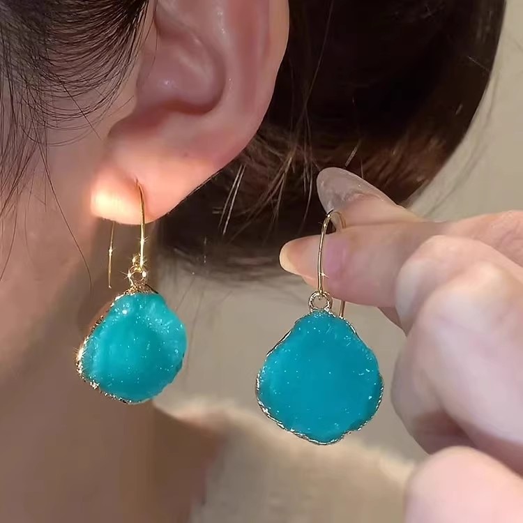 CX13579# 最便宜饰品批发 优雅气质不规则几何形经典湖蓝水晶耳环女轻奢小众高级感耳钉耳饰