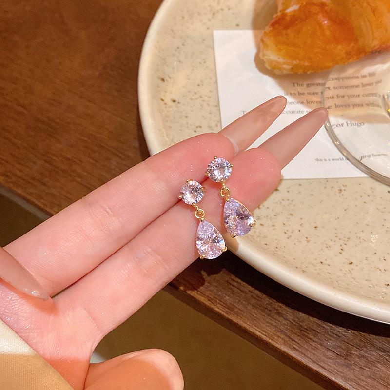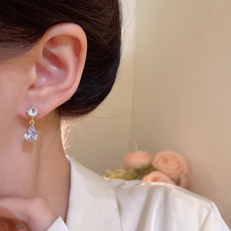 CX13582# 最便宜饰品批发 优雅气质简约爆闪锆石水滴形耳环S925银针轻奢小众高级感耳钉耳饰