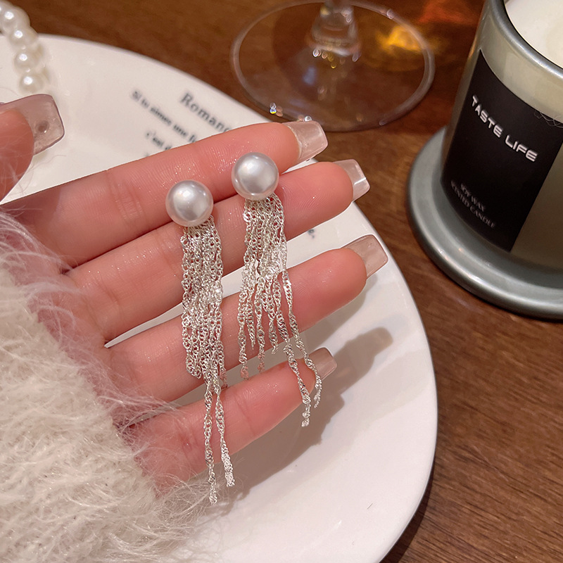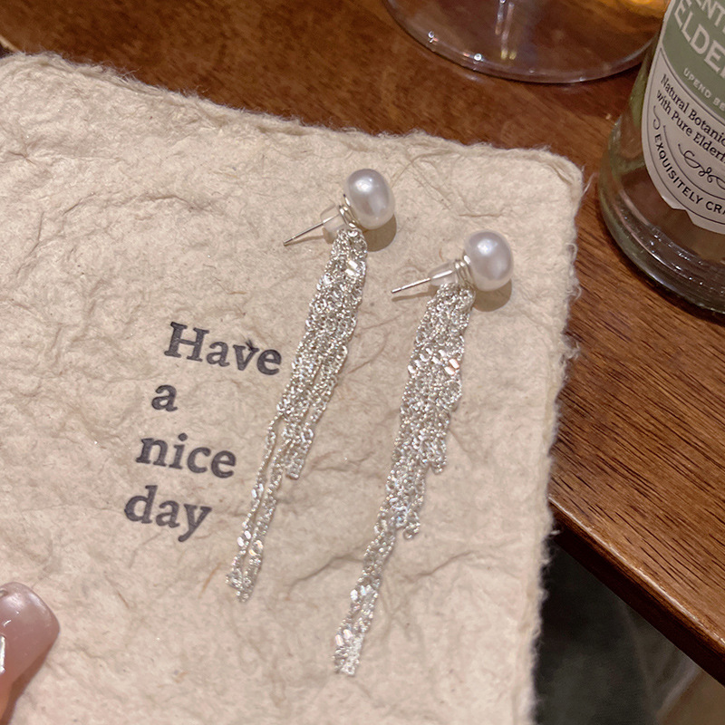 CX13584# 最便宜饰品批发 波光粼粼长款流苏耳环女轻奢小众高级感方圆脸珍珠耳钉网红耳饰品