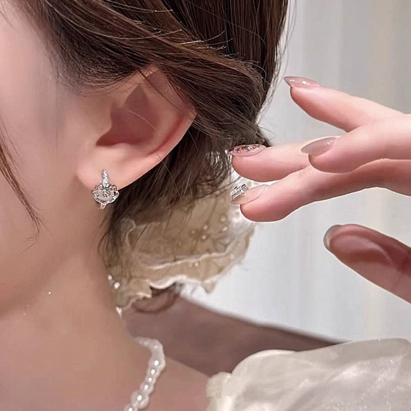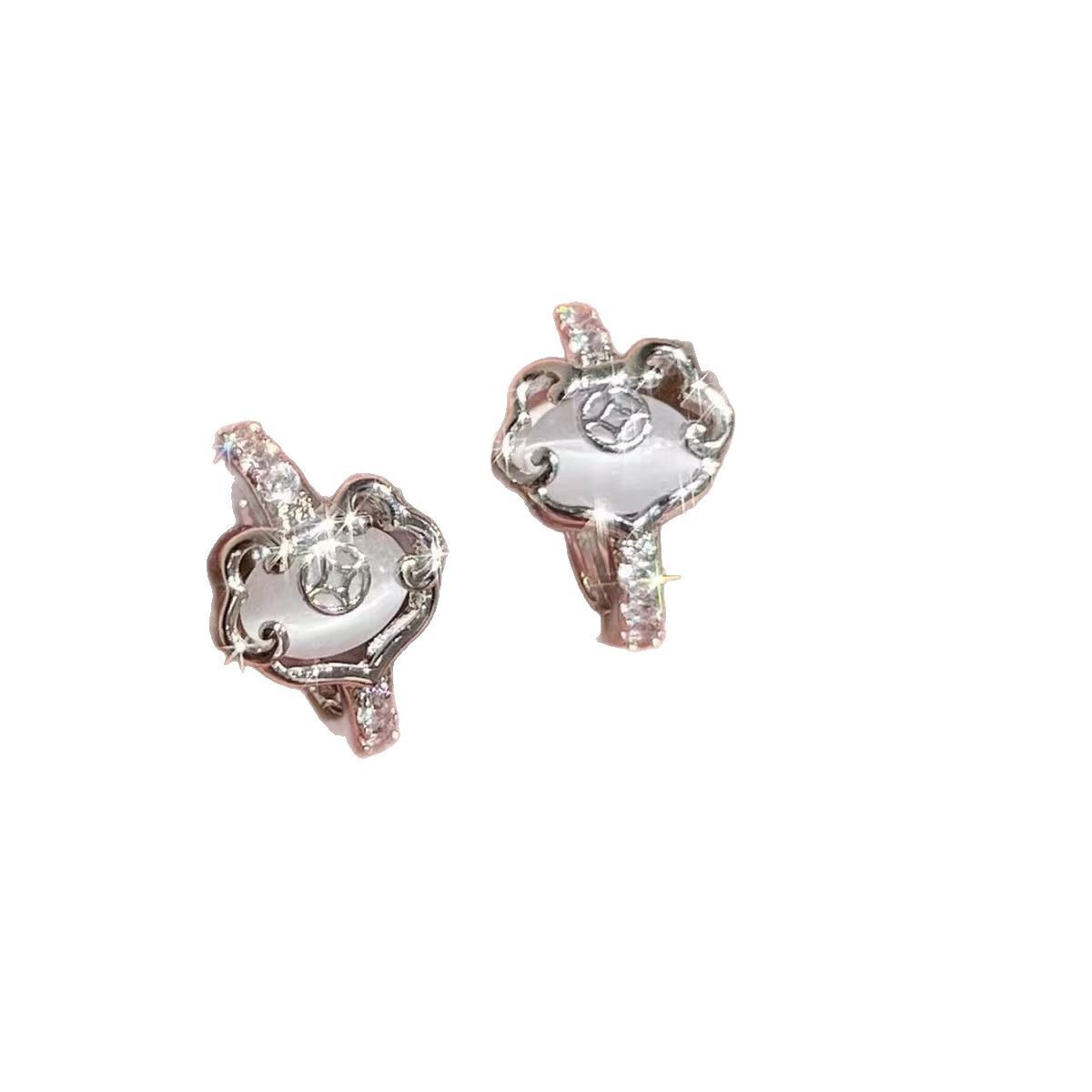 CX13586# 最便宜饰品批发 新中式复古猫眼石如意耳扣耳钉女精致微镶锆石耳环时尚气质耳饰品