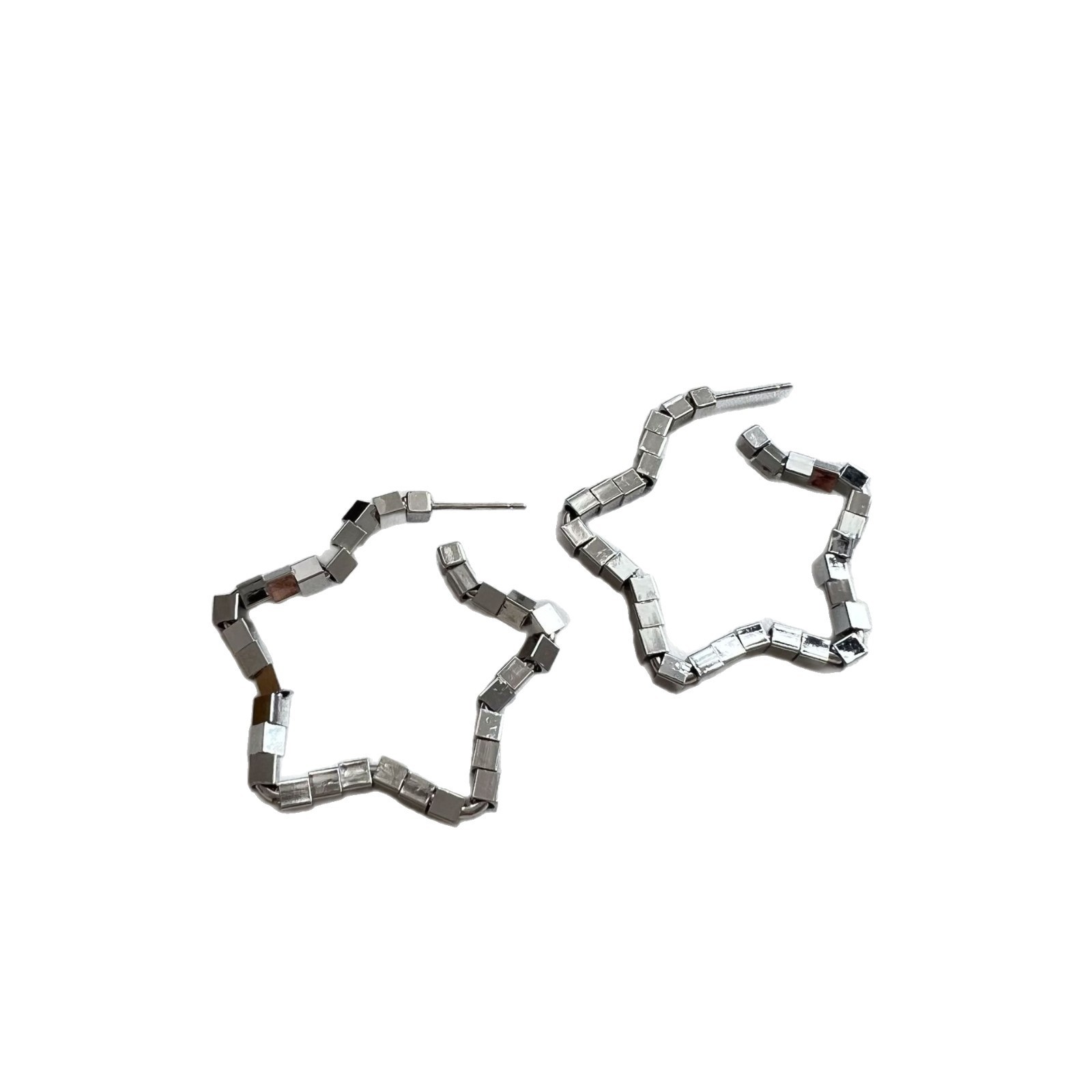CX13587# 最便宜饰品批发 高级感波光粼粼光面五角星耳钉女金属感冷淡风星星耳环辣妹风耳饰