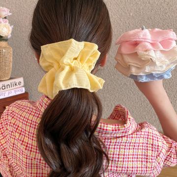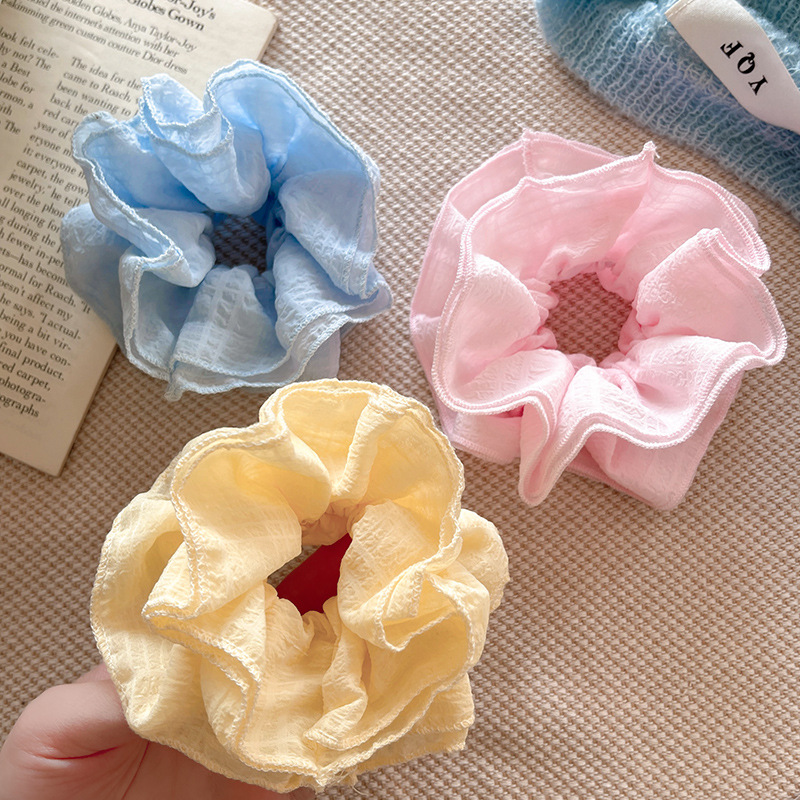 CX13593# 最便宜饰品批发 韩系温柔花边褶皱大肠发圈女高级感扎头发橡皮筋头绳大号头花发绳
