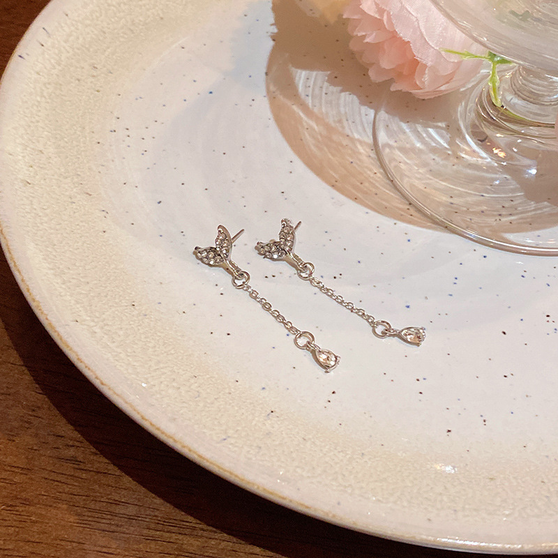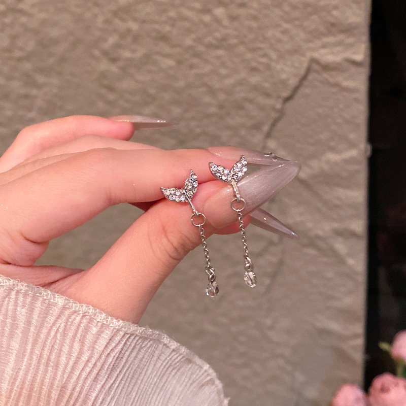 CX13595# 最便宜饰品批发 轻奢小众高级感长款流苏耳环女超闪满钻鱼尾耳钉百搭气质耳饰批发