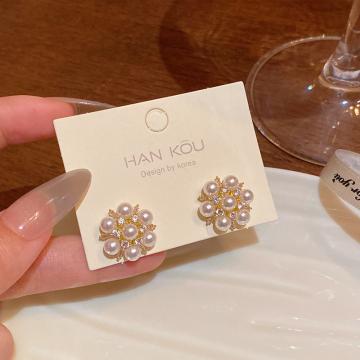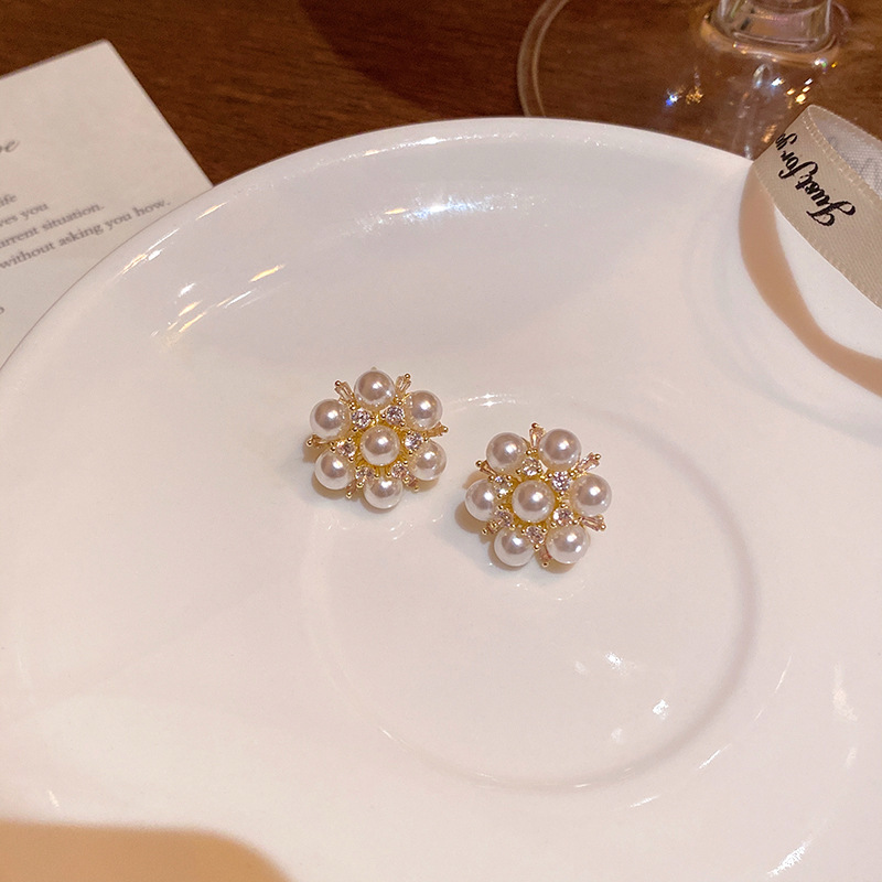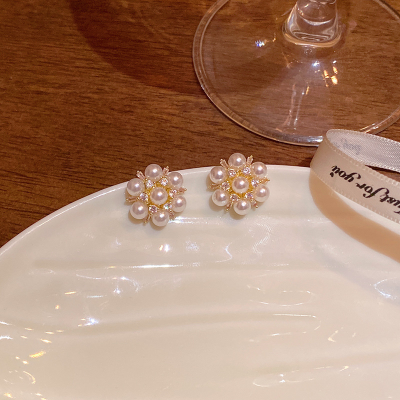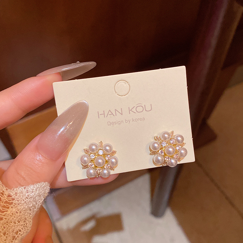 CX13598# 最便宜饰品批发 小香风精致锆石珍珠花朵耳钉女轻奢小众甜美简约气质耳环网红耳饰