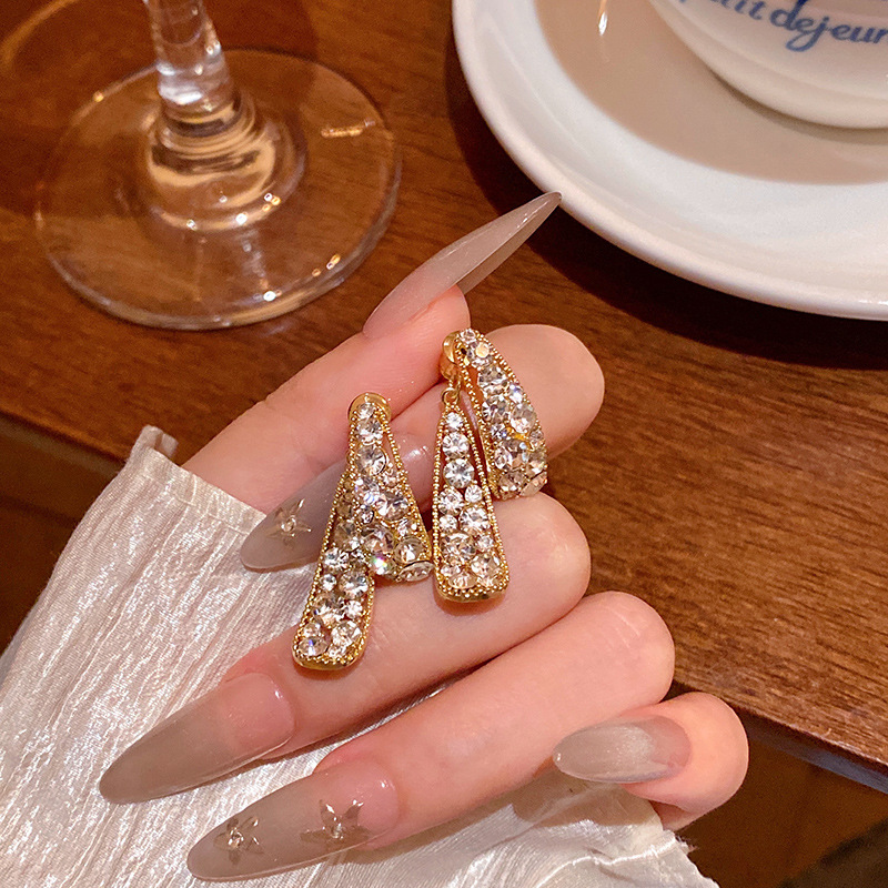 CX13601# 最便宜饰品批发 韩系爆款超闪满钻水滴形耳环女轻奢小众高级感一款两戴耳钉耳饰品