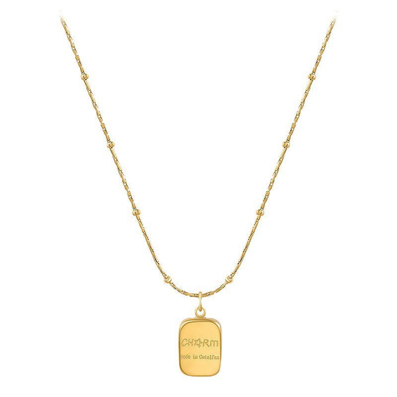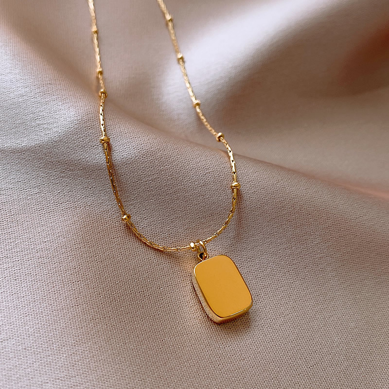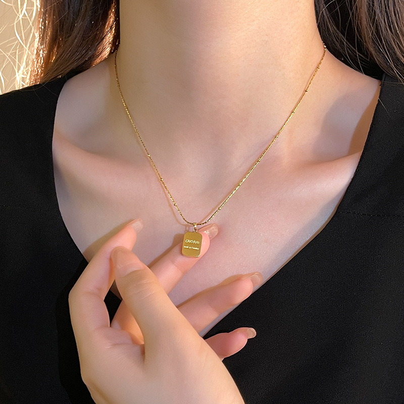 CX13604# 最便宜饰品批发 韩系爆款小金砖钛钢项链轻奢小众时尚百搭气质简约双面锁骨链颈链