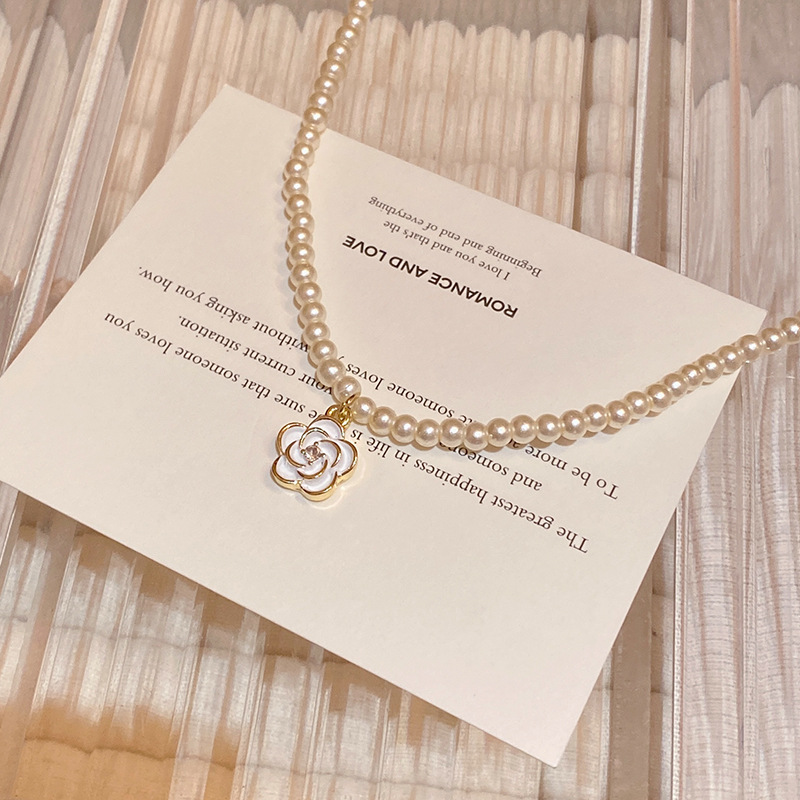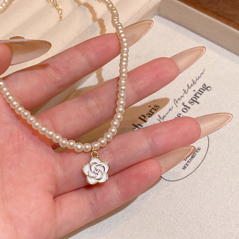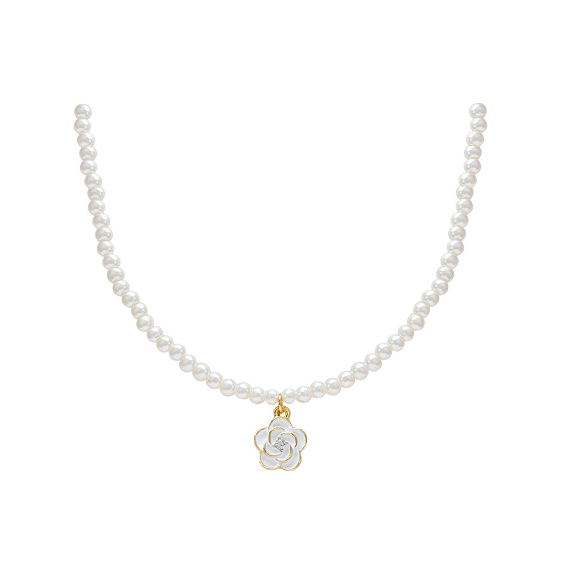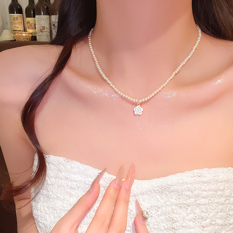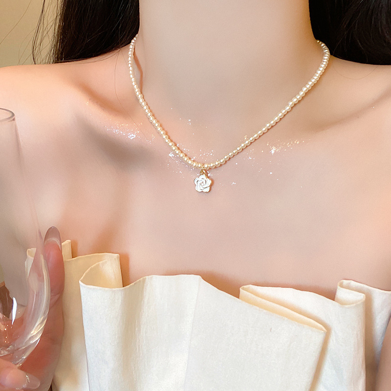 CX13608# 最便宜饰品批发 正圆S家小米珠锁骨链温柔气质山茶花项链女轻奢小众高级感颈链