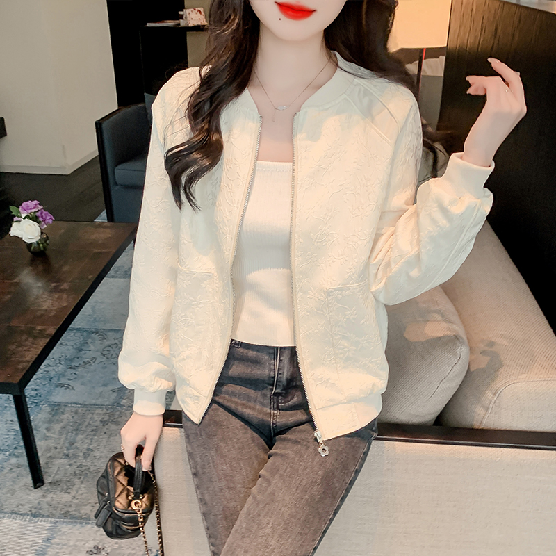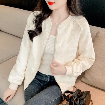 FA44937# 小个子别致外套女春季新款时尚提花高级短款棒球服上衣 服裝批發女裝批發服飾貨源