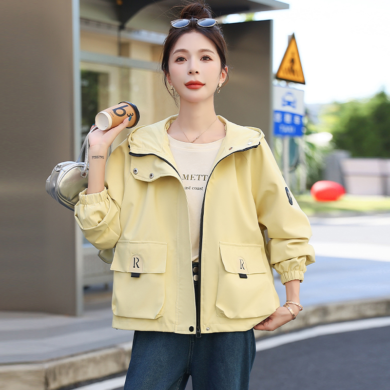 FA44942# 连帽冲锋衣外套女短款春秋秋季新款女士休闲上衣夹克 服裝批發女裝批發服飾貨源