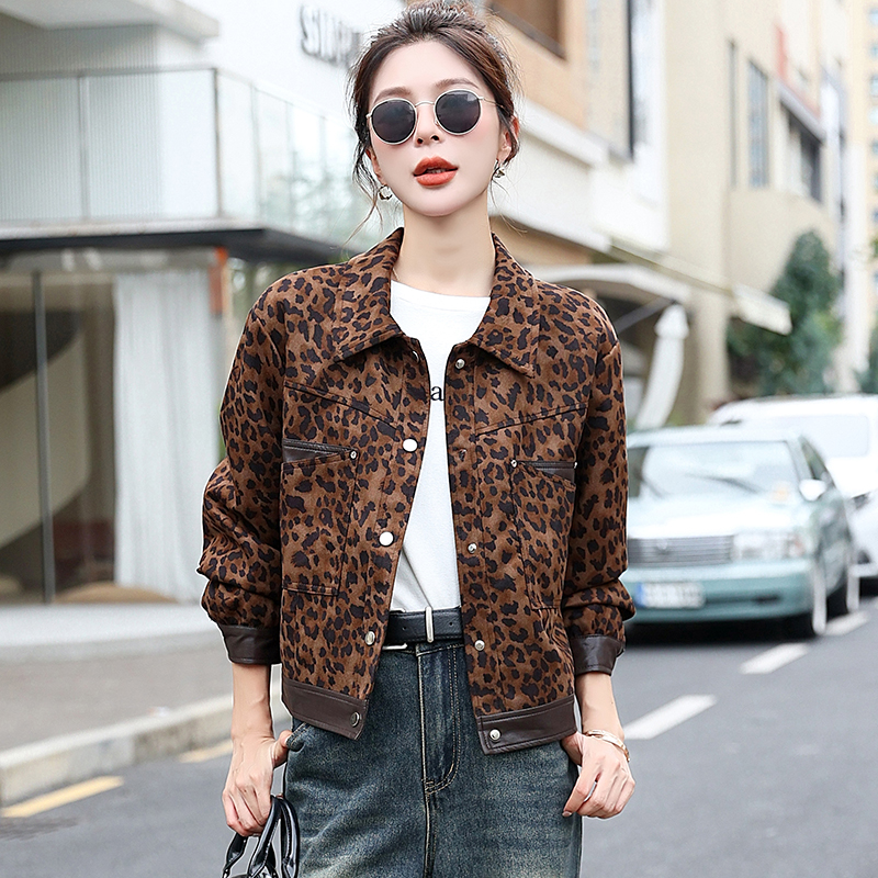 FA44944# 豹纹短外套女秋季新款洋气显瘦休闲宽松小个子夹克上衣潮 服裝批發女裝批發服飾貨源