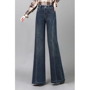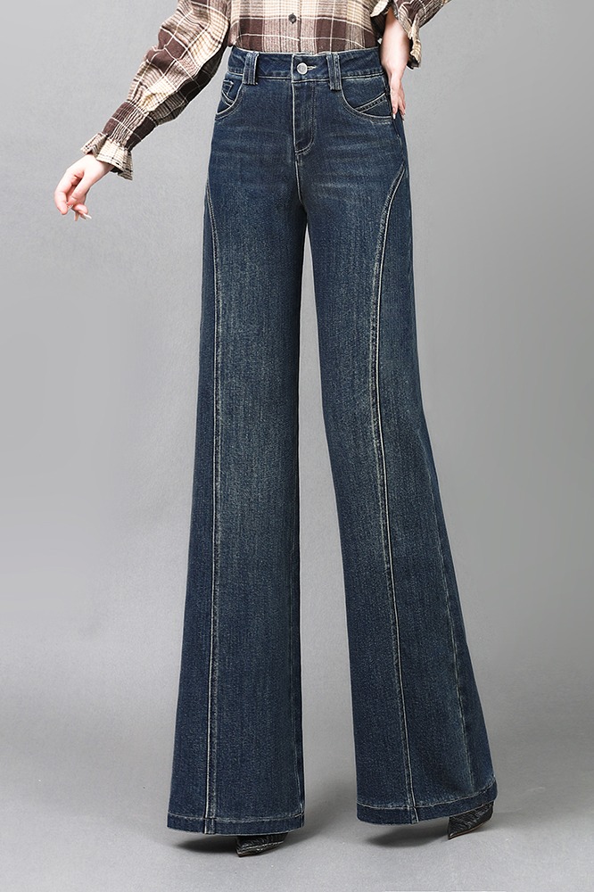 FA44952# 复古蓝加长阔腿牛仔裤女春秋高个子新款高腰宽松微喇拖地裤 服裝批發女裝批發服飾貨源