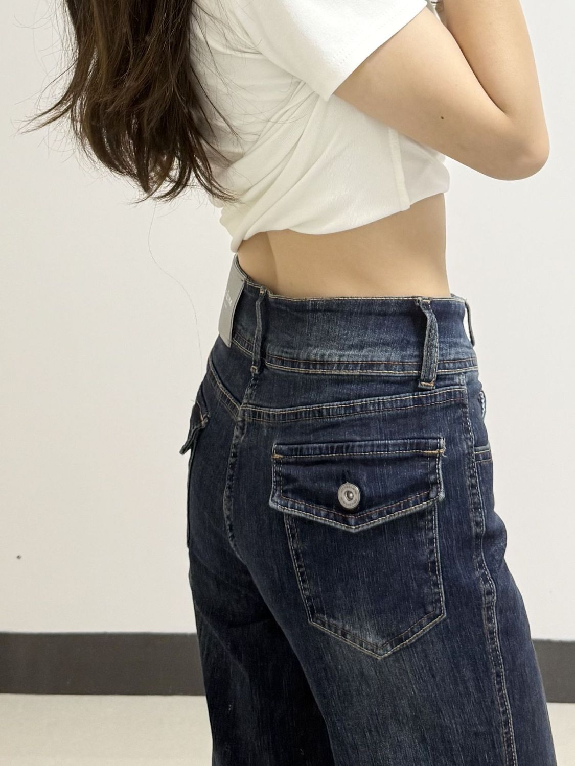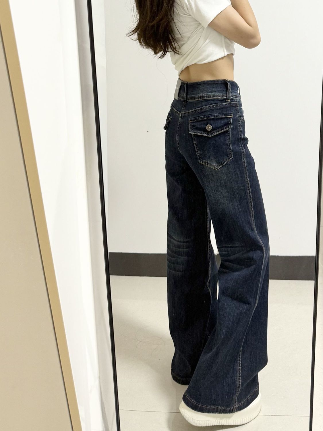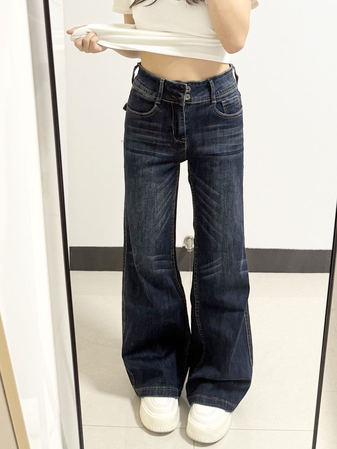 FA45306# 喇叭牛仔裤女大码秋季新款深蓝色休闲不贴腿显瘦百搭拖地裤子 服裝批發女裝批發服飾貨源