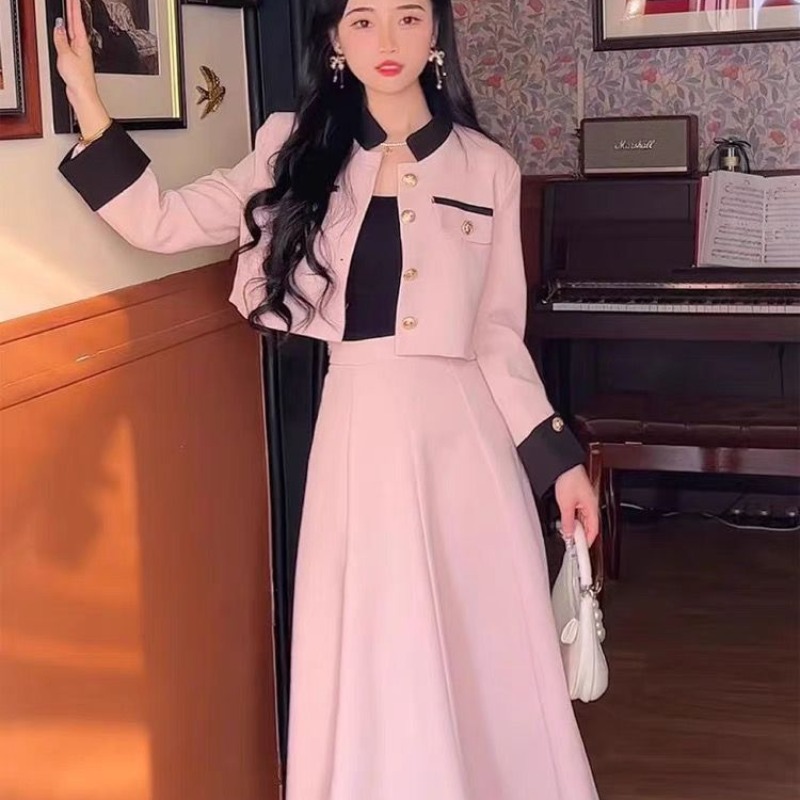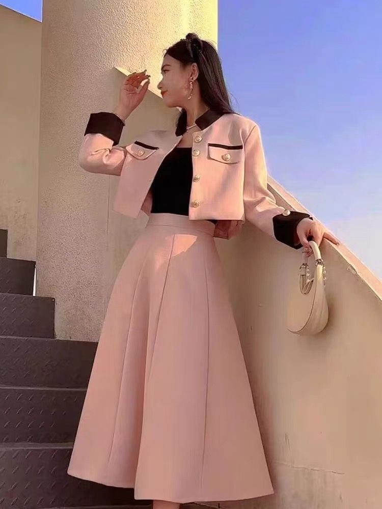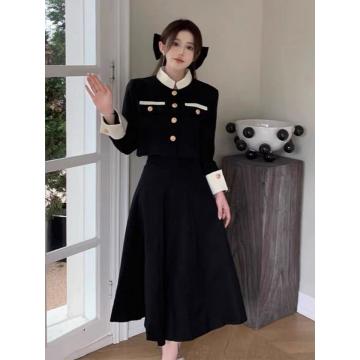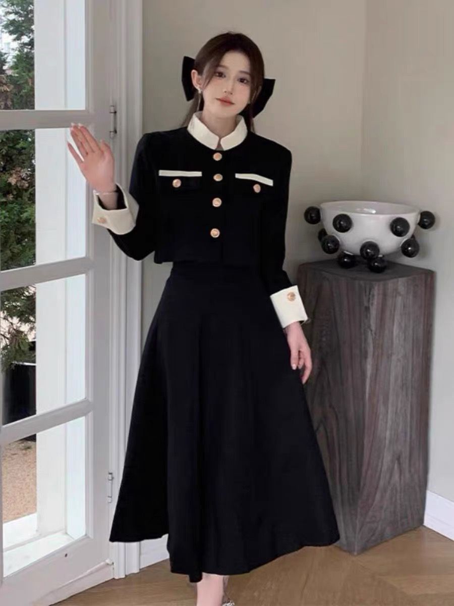 FA45209# 秋天撞色立领小香风套装裙两件套气质成熟御姐套装裙子女 服裝批發女裝批發服飾貨源