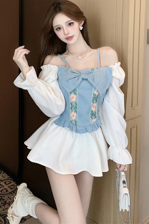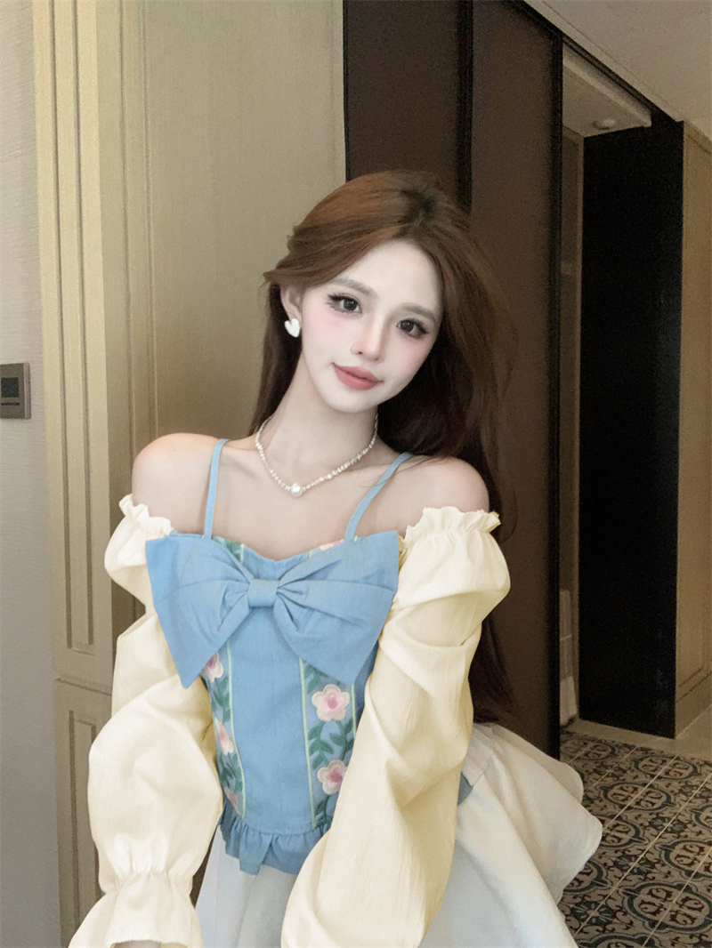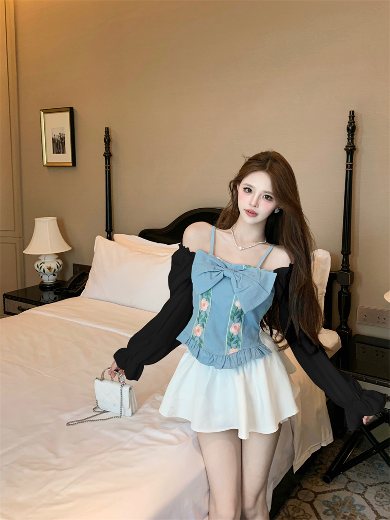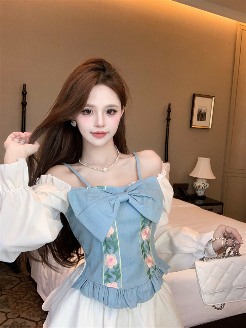 FA45354# 新款重工牛仔设计感立体绣花甜美吊带显瘦上衣 服裝批發女裝批發服飾貨源
