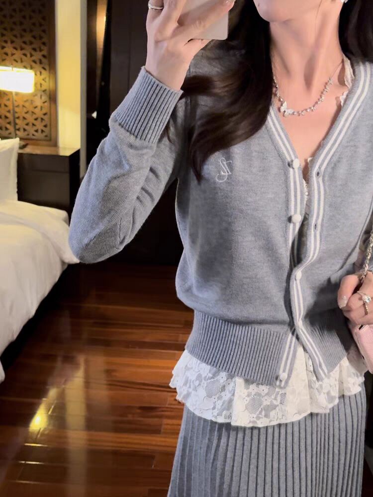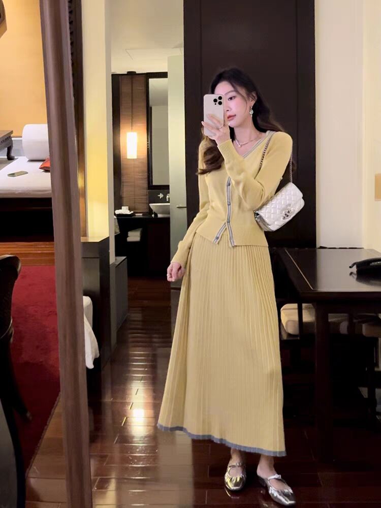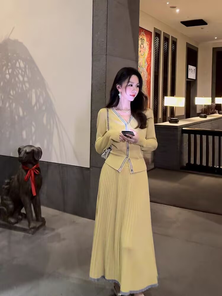 FA45543# 千金洋气减龄小香风刺绣开衫+百褶裙3件套套装 服裝批發女裝批發服飾貨源