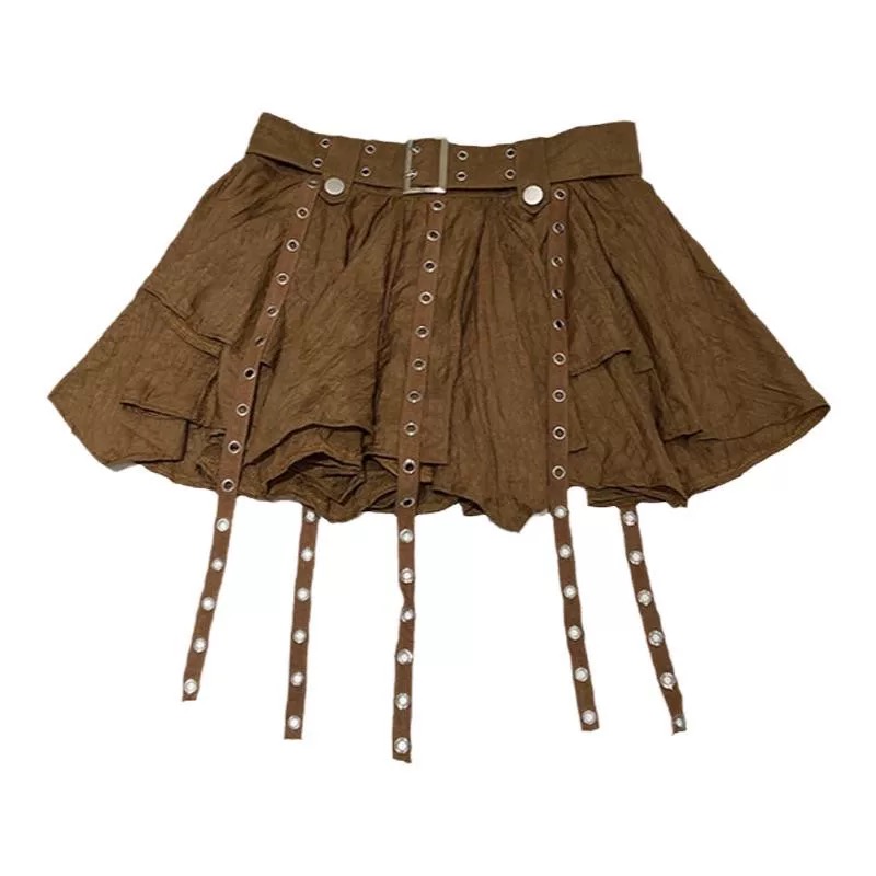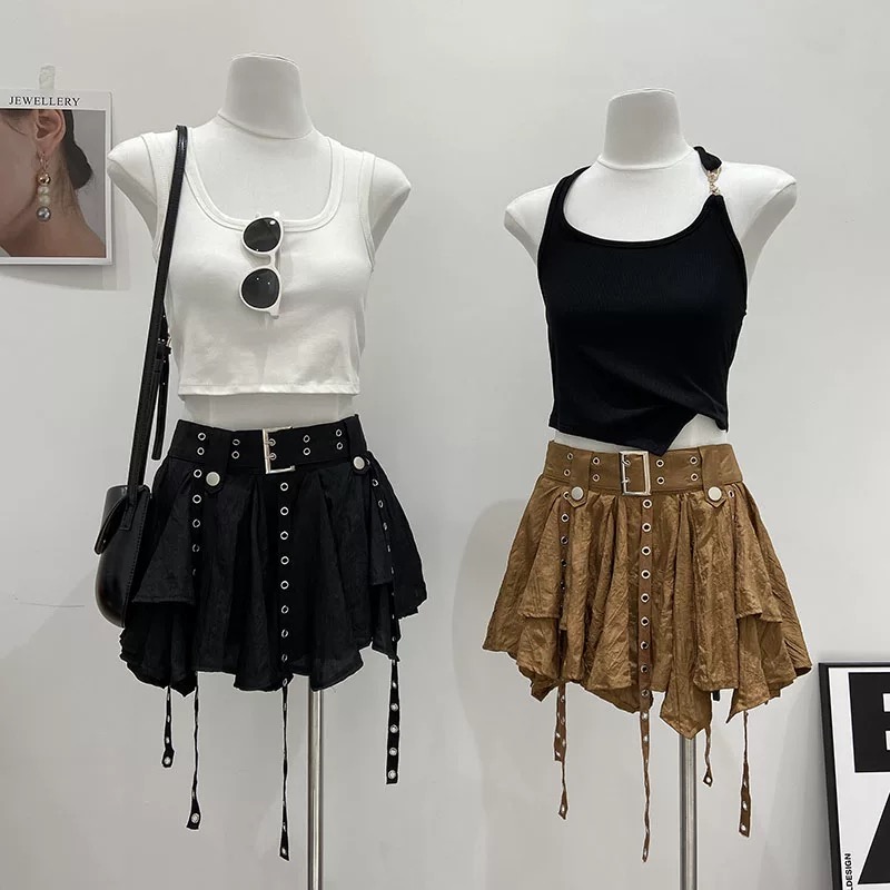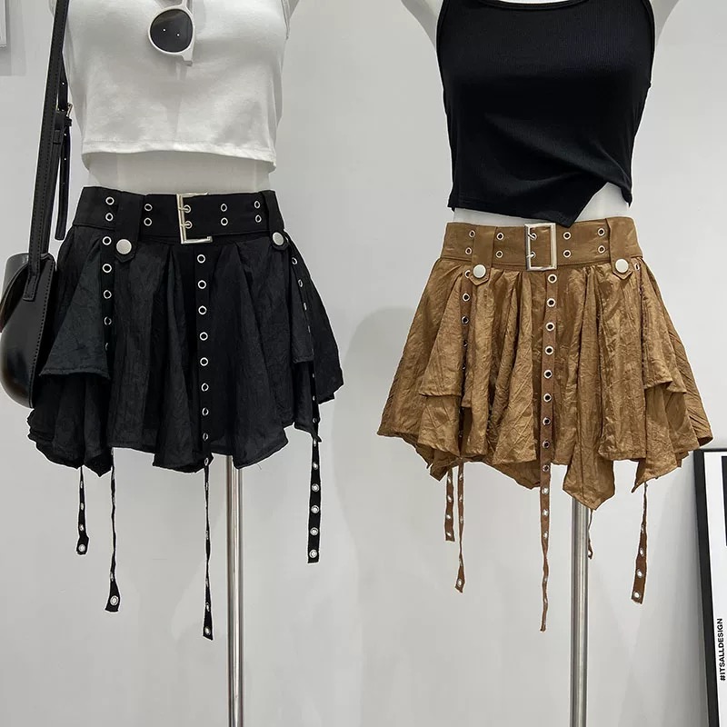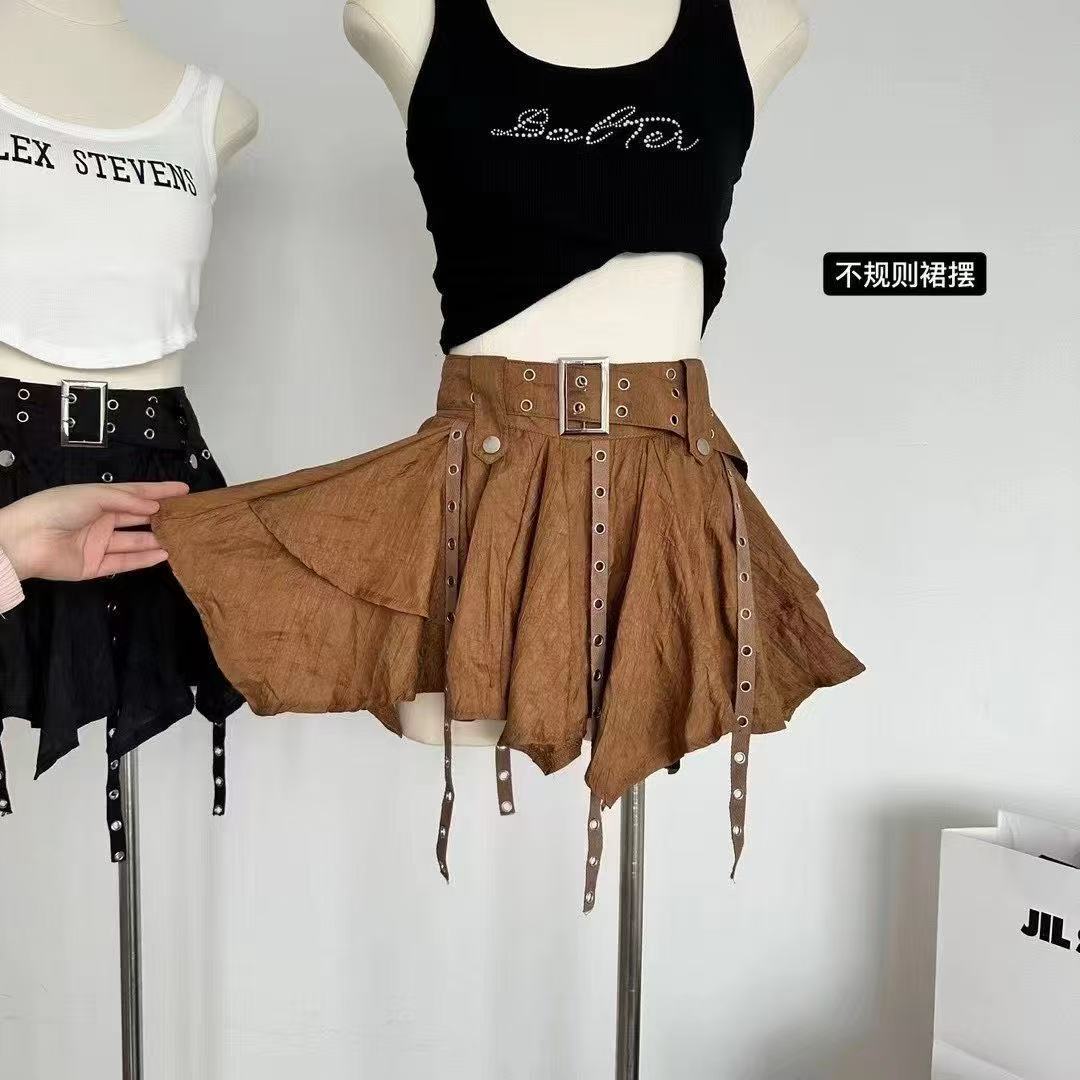 FA45561# 夏季新款韩版小众复古不规则裙摆腰带半身裙高腰荷叶边短裙女 服裝批發女裝批發服飾貨源