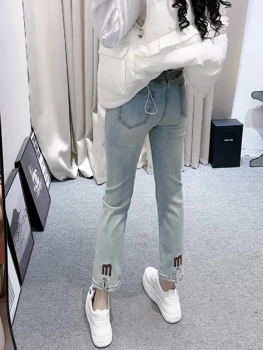 FA45569# 梨形身材微胖穿搭大码女装九分直筒烟管牛仔裤子女春季新款 服裝批發女裝批發服飾貨源