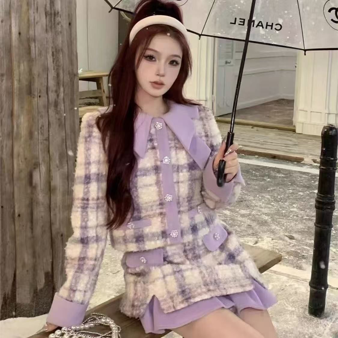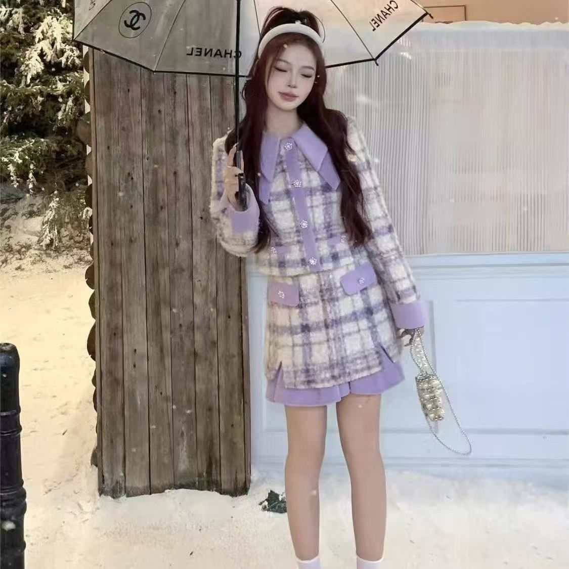 FA45757# 新款秋冬外套气质时尚香风长袖两件套小众短裙加厚套装 服裝批發女裝批發服飾貨源