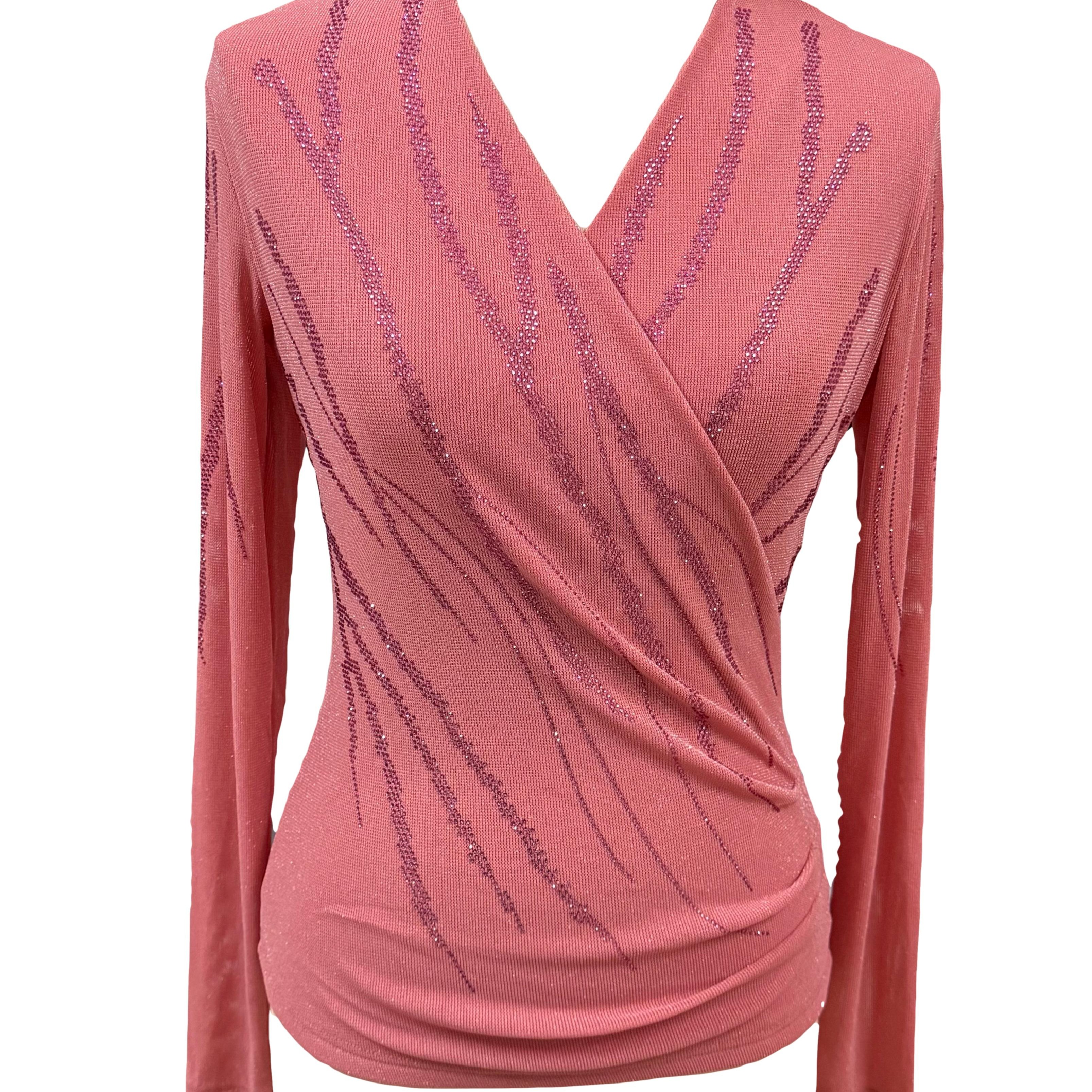 FA45819# 秋季新款交叉V领时尚烫钻长袖上衣修身型侧身褶皱显瘦优雅上衣 服裝批發女裝批發服飾貨源