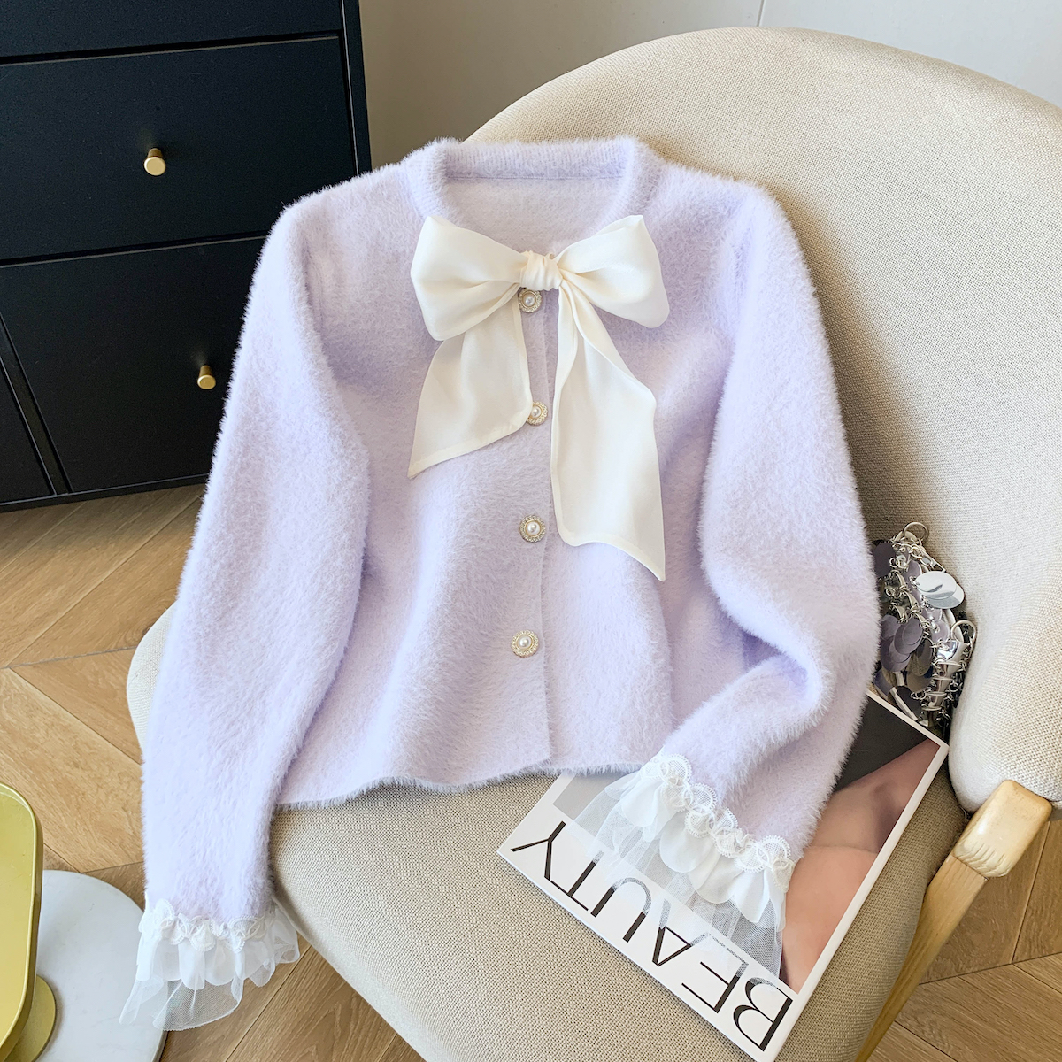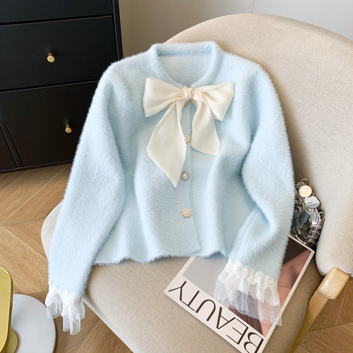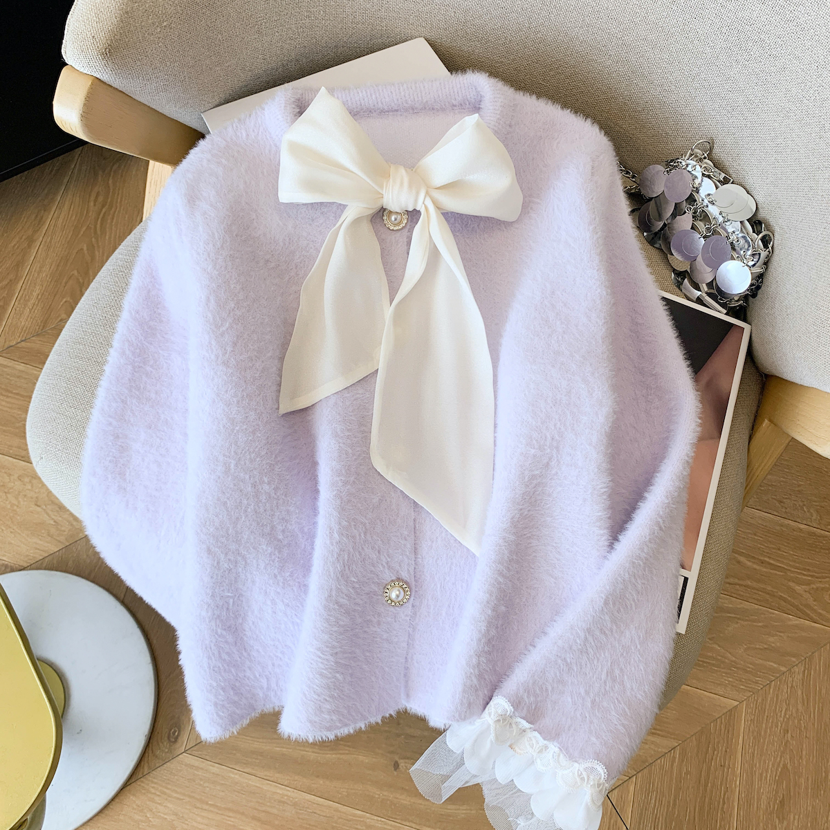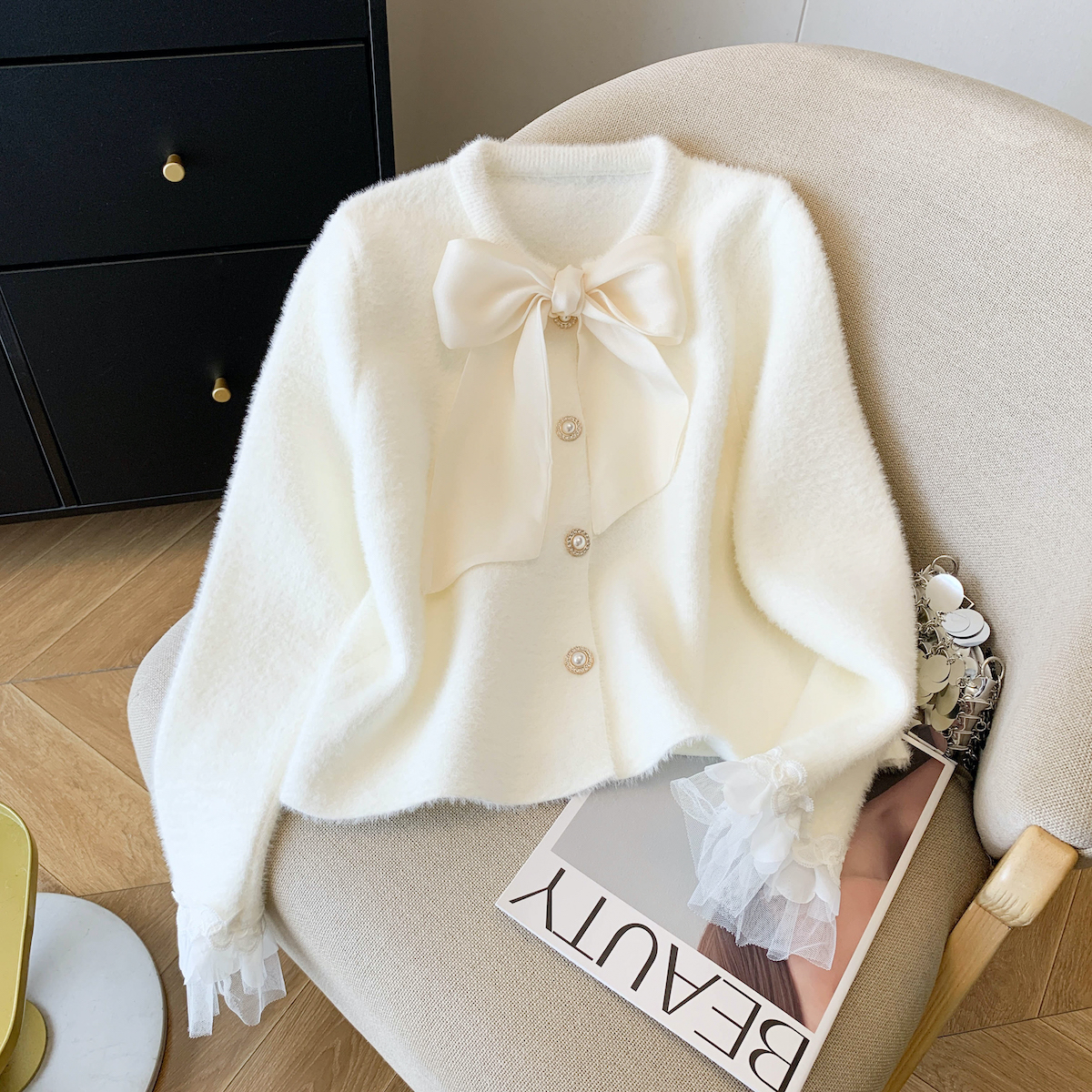 FA45937# 高端轻奢女装洋气质蝴蝶结系带针织衫秋季韩版小香风毛衣 服裝批發女裝批發服飾貨源