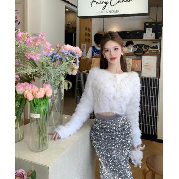 FA45938# 小香风法式名媛水貂绒毛衣女慵懒风长袖针织开衫外套上衣 服裝批發女裝批發服飾貨源