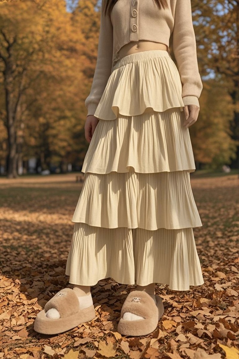 FA46037# 韩国丝绒半身裙女秋冬季新款高腰显瘦遮胯A字百褶蛋糕裙 服裝批發女裝批發服飾貨源