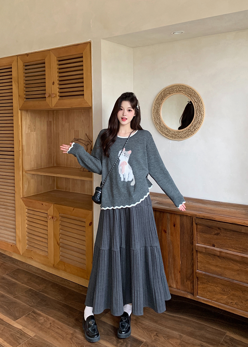 FA46041# 秋冬新款胖mm大码女气质百搭显瘦a字裙毛呢压褶裙有里衬 服裝批發女裝批發服飾貨源