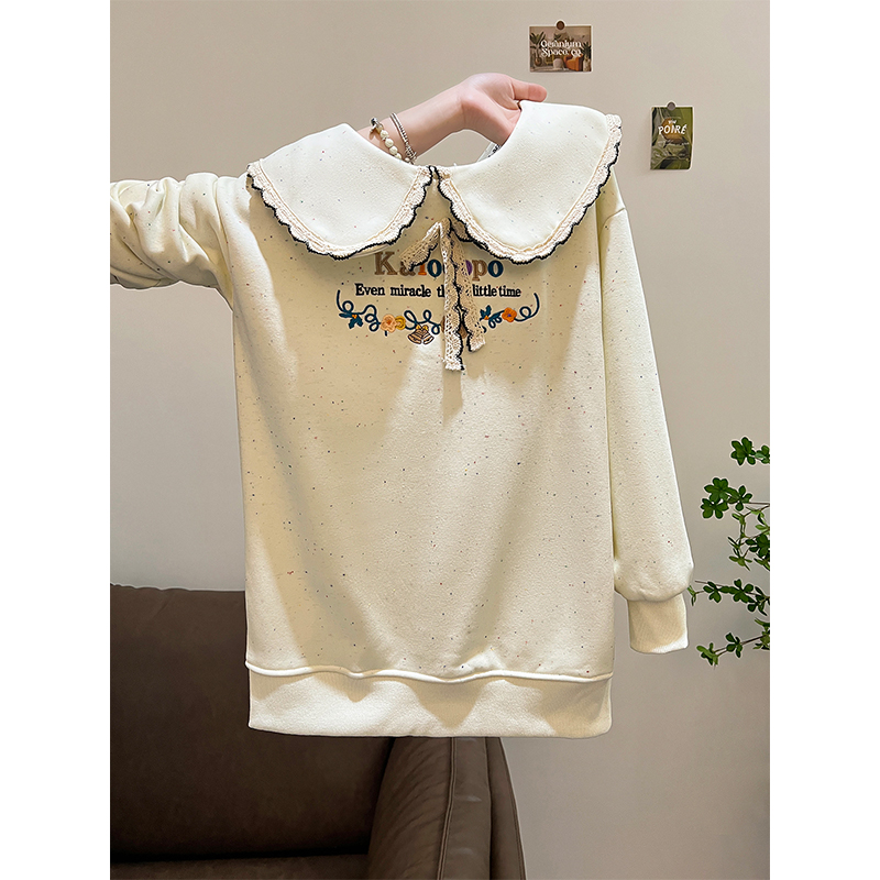 FA46155# 首发彩色点复天鹅绒特大码300斤中长款刺绣娃娃领加绒 服裝批發女裝批發服飾貨源
